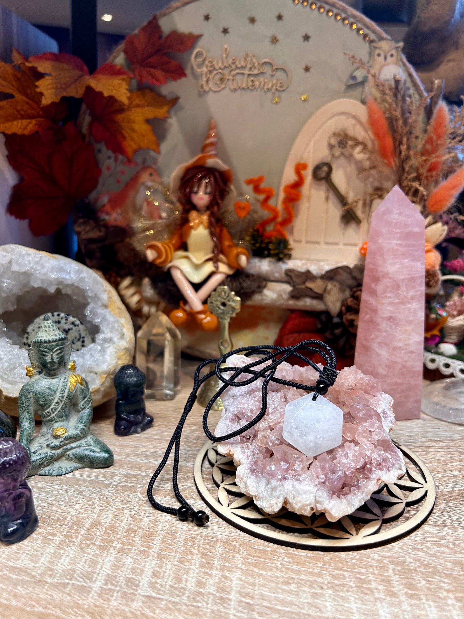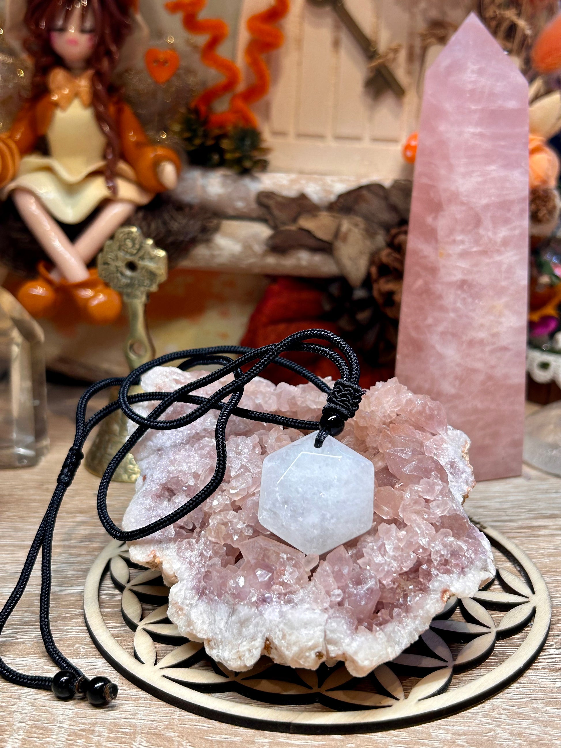 Collier en quartz blanc avec Sceau de Salomon