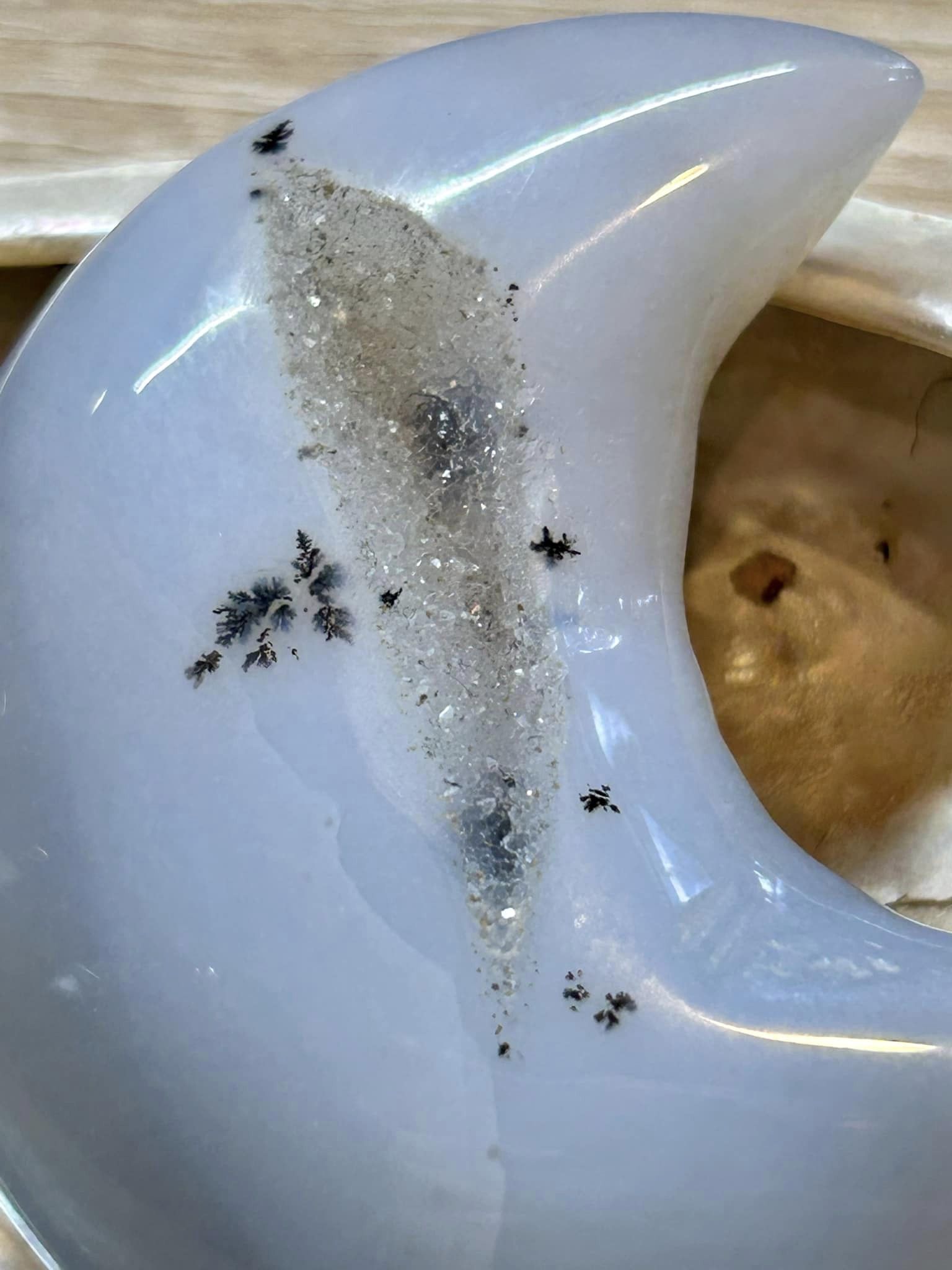 Plan spirituel : Pierre d’ancrage, elle est parfaite pour centrer l’énergie. L’Agate fait le pont entre le ciel et la terre, c’est la pierre de la clairvoyance et de la contemplation. Elle stimule le développement spirituel. Durant une méditation, elle agit à l’image de ses couches : elle vous dirige vers une connexion profonde, dans vos expériences de vie pour y rechercher le meilleur, laissant les difficultés derrière.