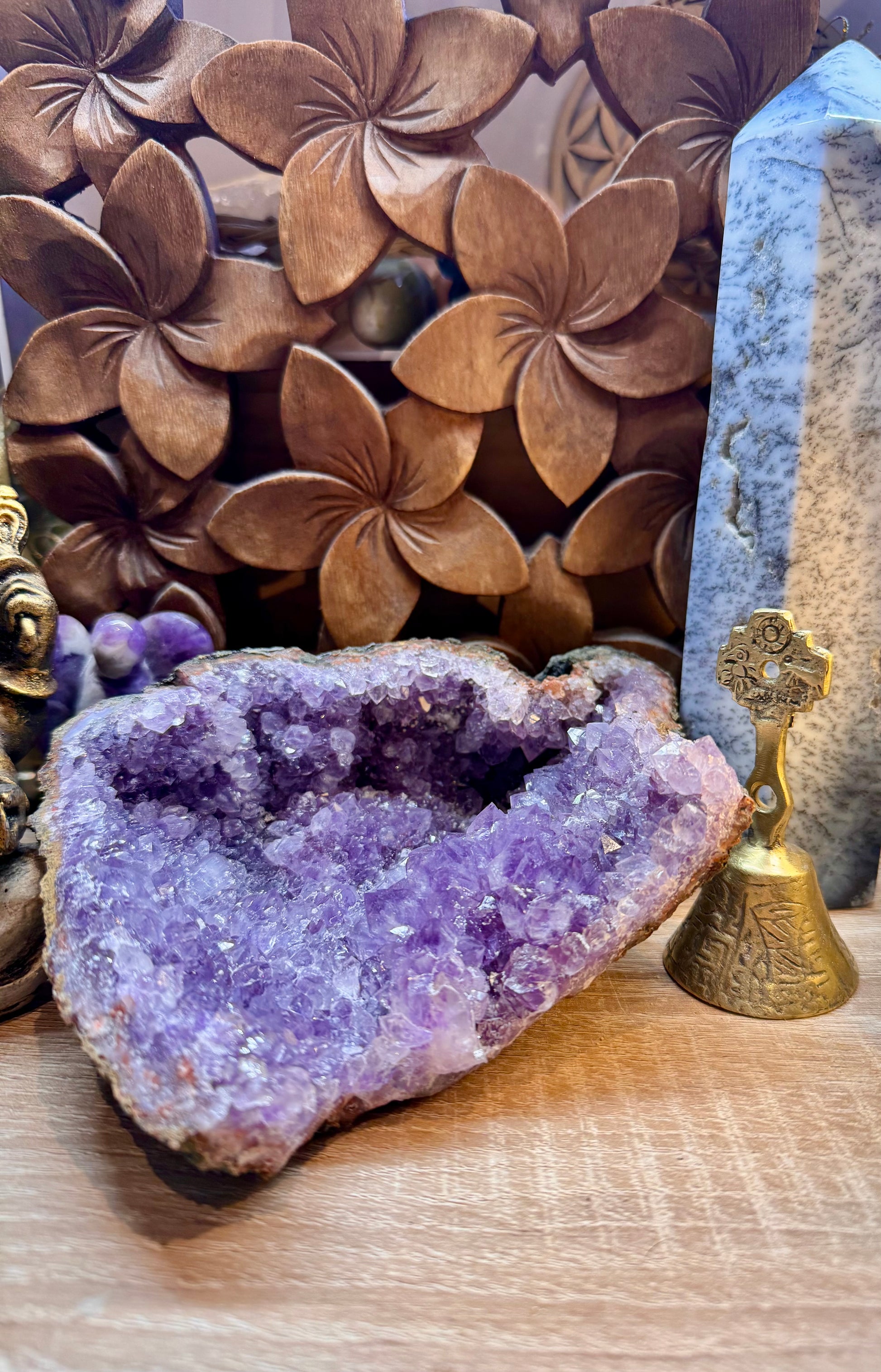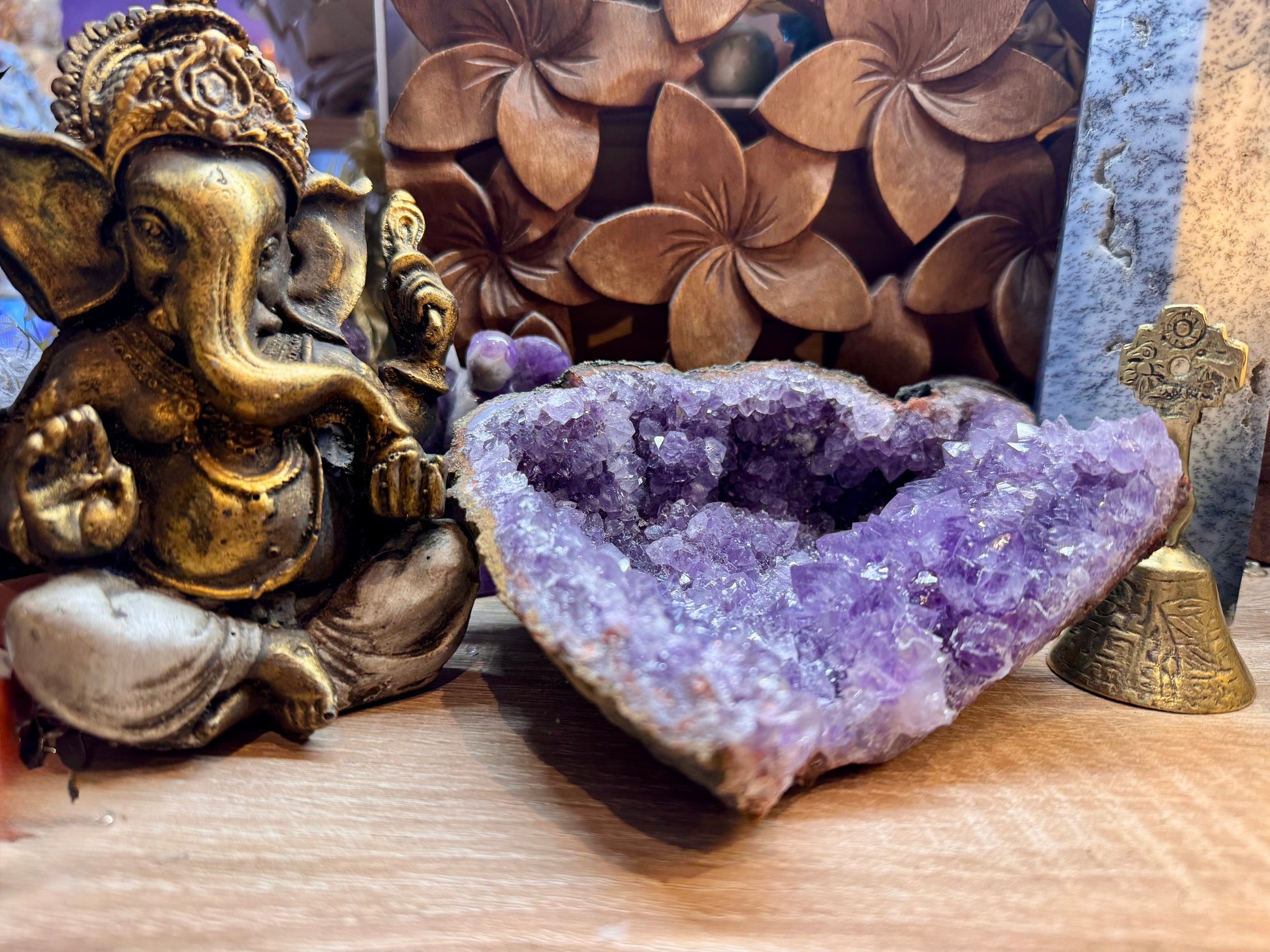 Puissante et protectrice, l’améthyste élève la vibration énergétique du lieu où elle se trouve.