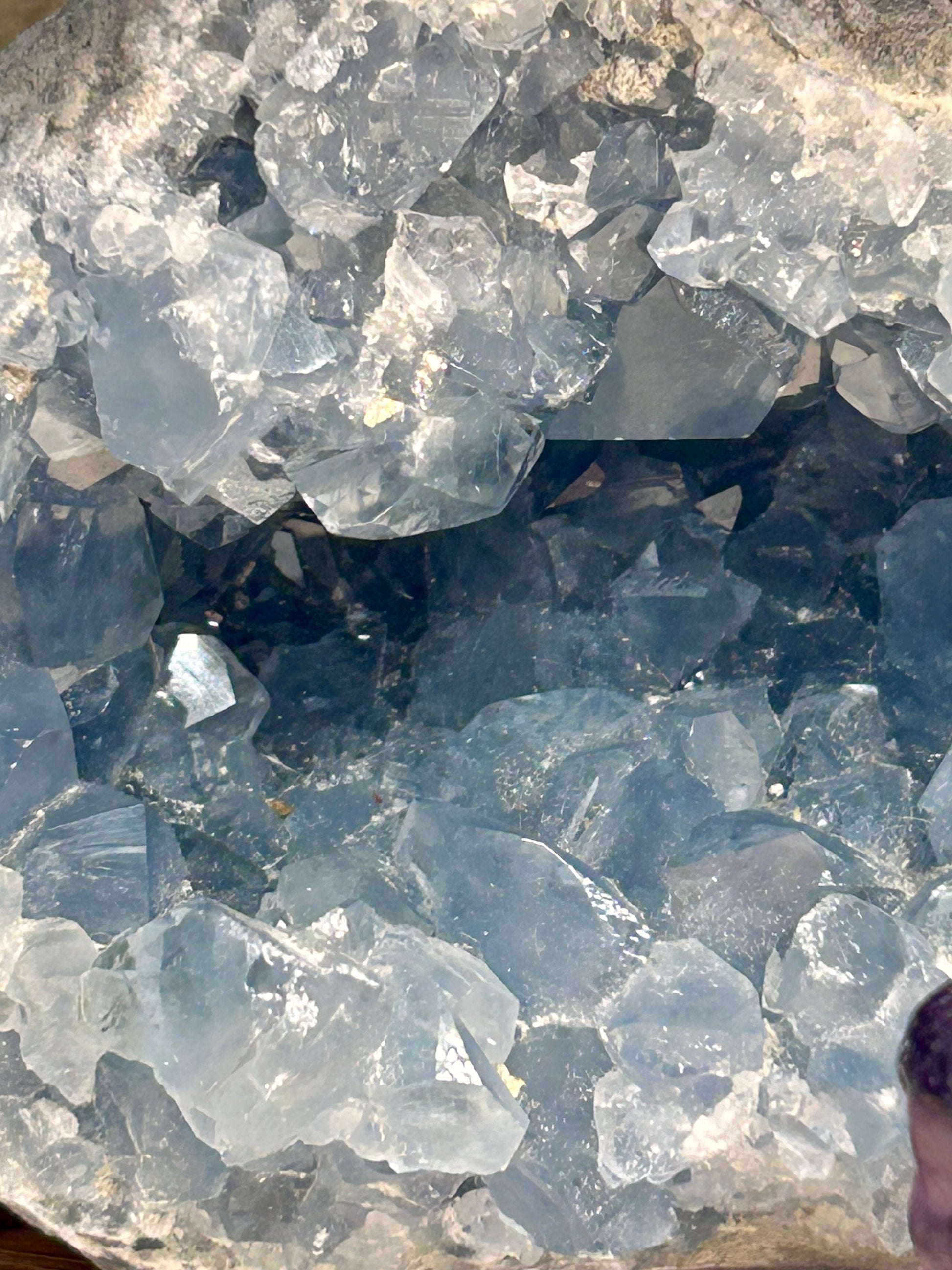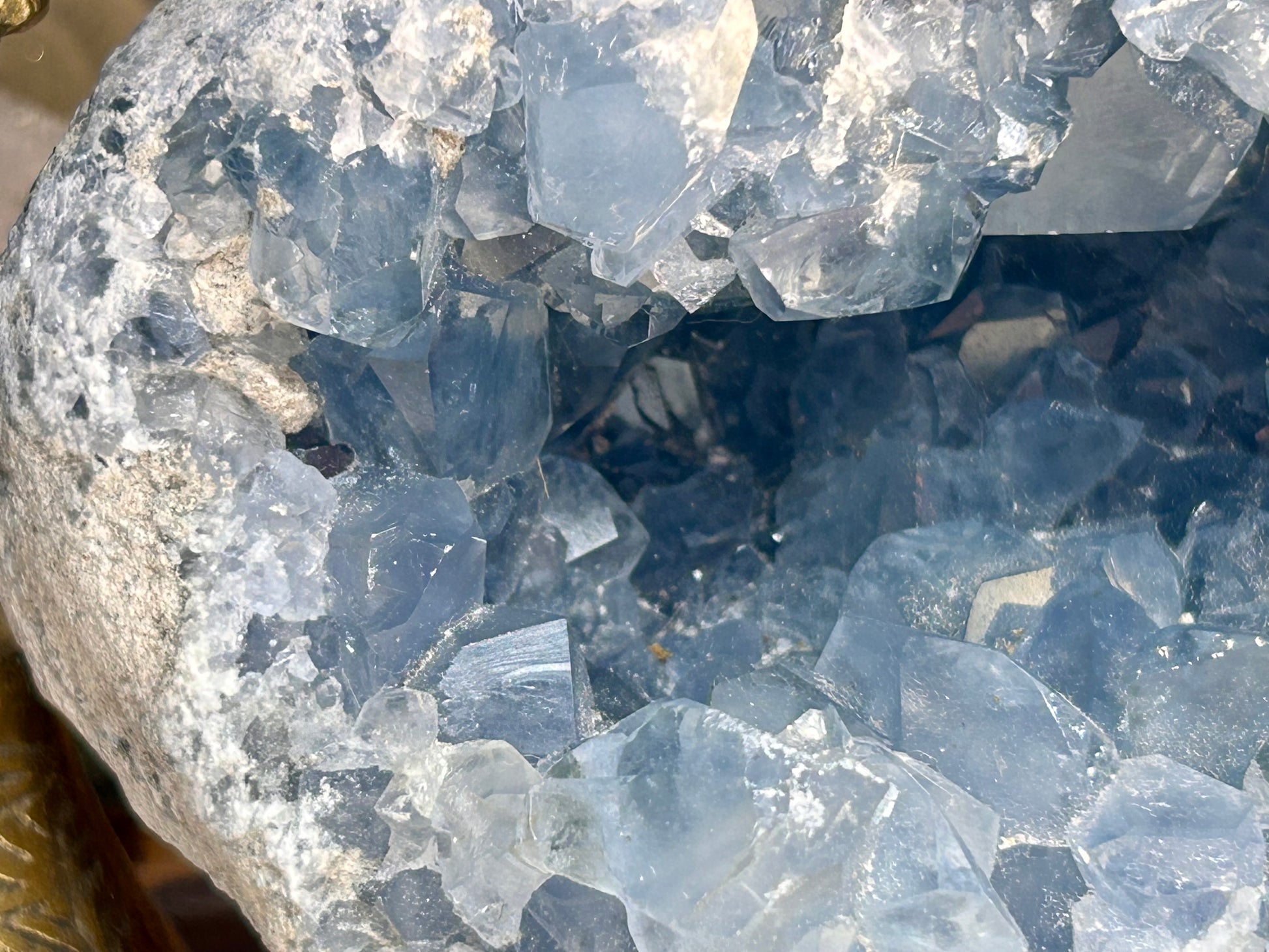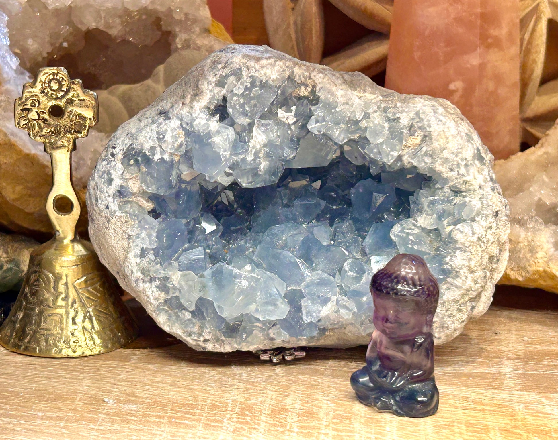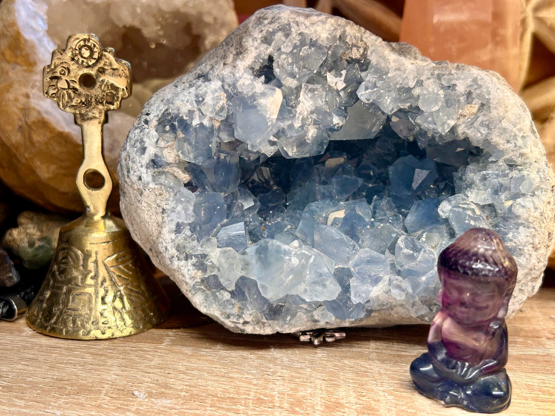 La célestine ou célestite est surnommée la « Pierre des Anges », elle symbolise la douceur, la paix et la méditation.