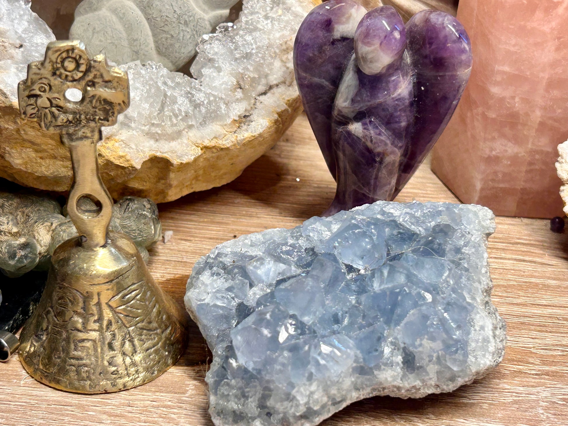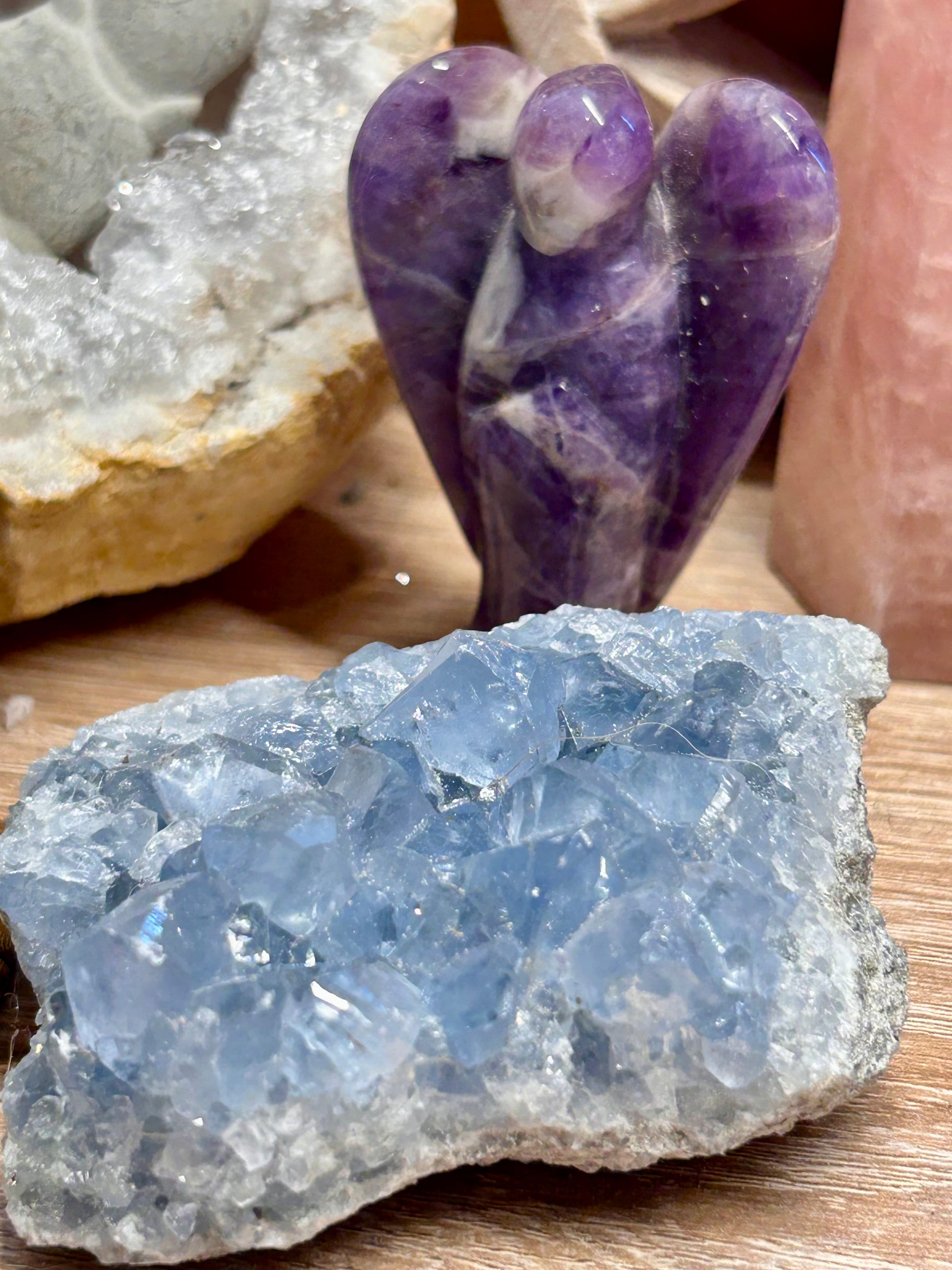 La célestine ou célestite est surnommée la « Pierre des Anges », elle symbolise la douceur, la paix et la méditation.