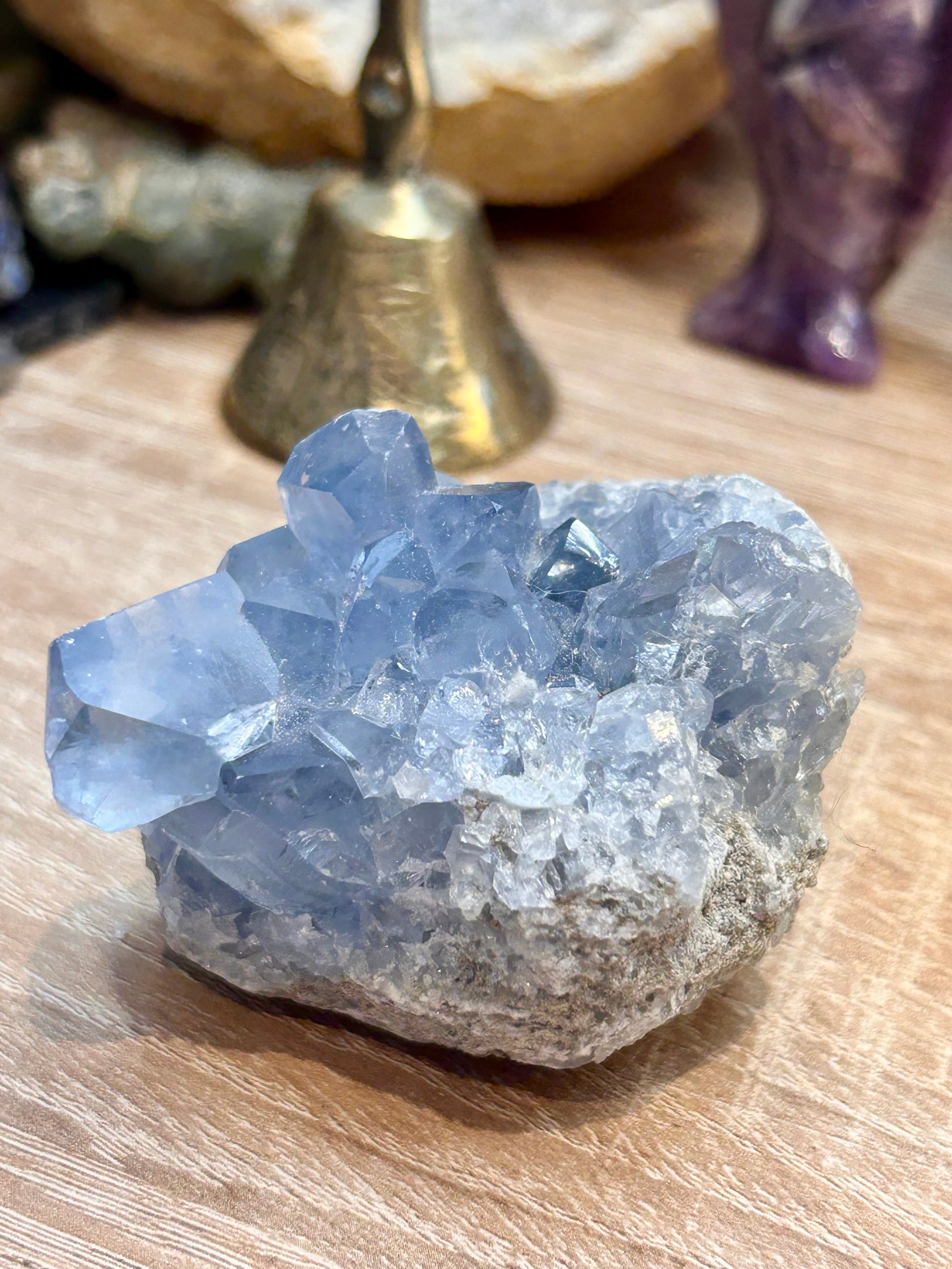 Plan émotionnel : La Célestine, est une pierre réconfortante et apaisante, elle apporte la tendresse maternelle tout en agissant avec douceur. Elle relaxe aussi les tensions et calme l’esprit. (idéale pour les enfants).