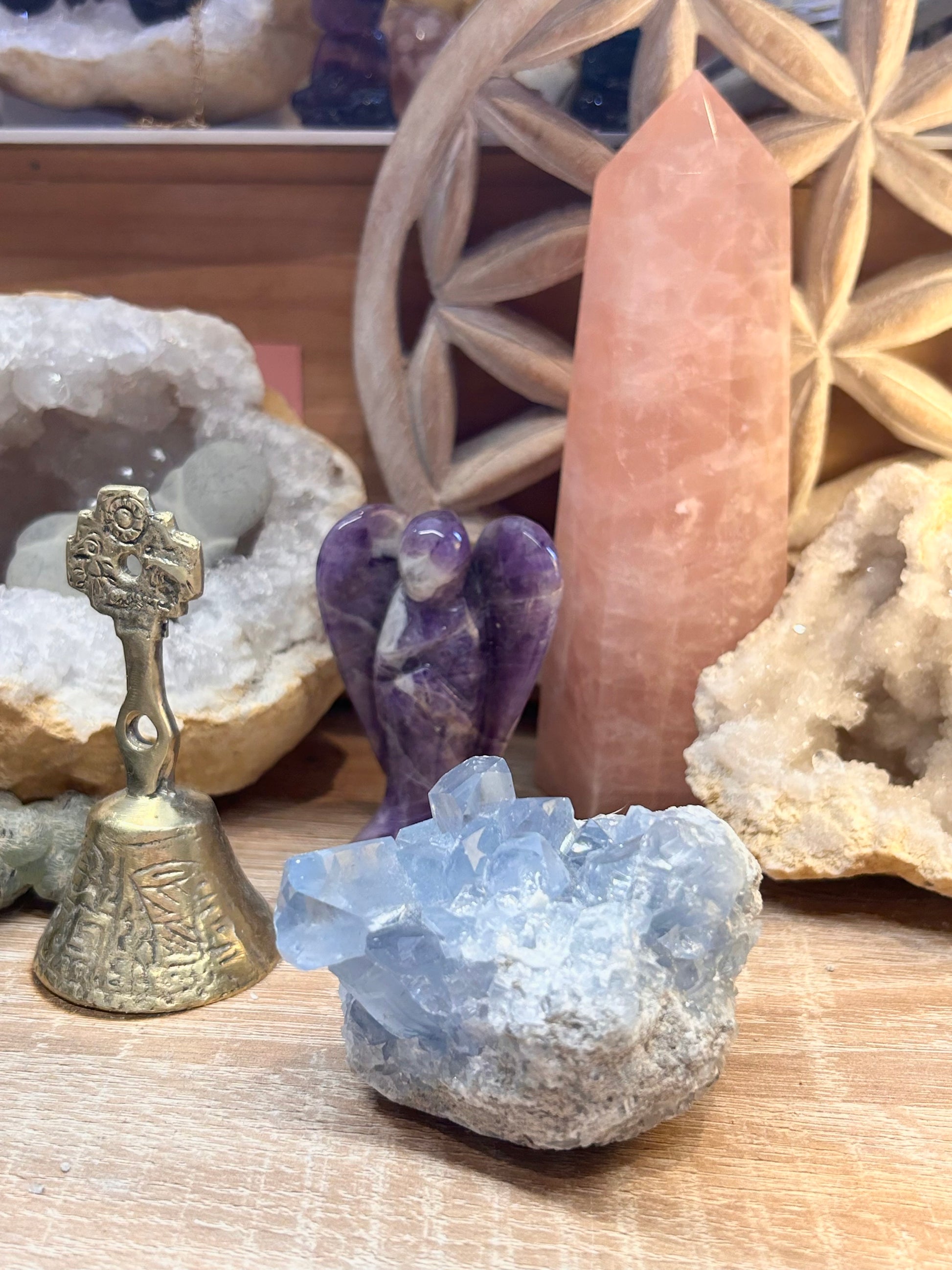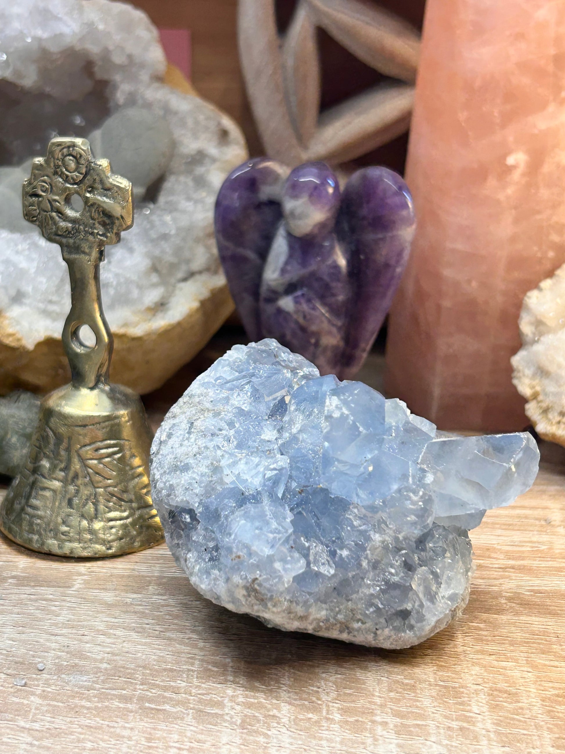 La célestine ou célestite est surnommée la « Pierre des Anges », elle symbolise la douceur, la paix et la méditation.