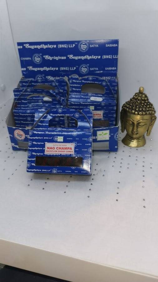 Le Masala du Nag Champa contient pas moins de 160 produits aromatiques, notamment la fleur jaune d'un arbre de l'Himalaya, le Michelia Champaka, qui lui procure son parfum caractéristique (L'encens au Champaka étant traditionnellement utilisé en Inde lors des rituels d'offrande à Ganesh, le Dieu à tête d'éléphant !).