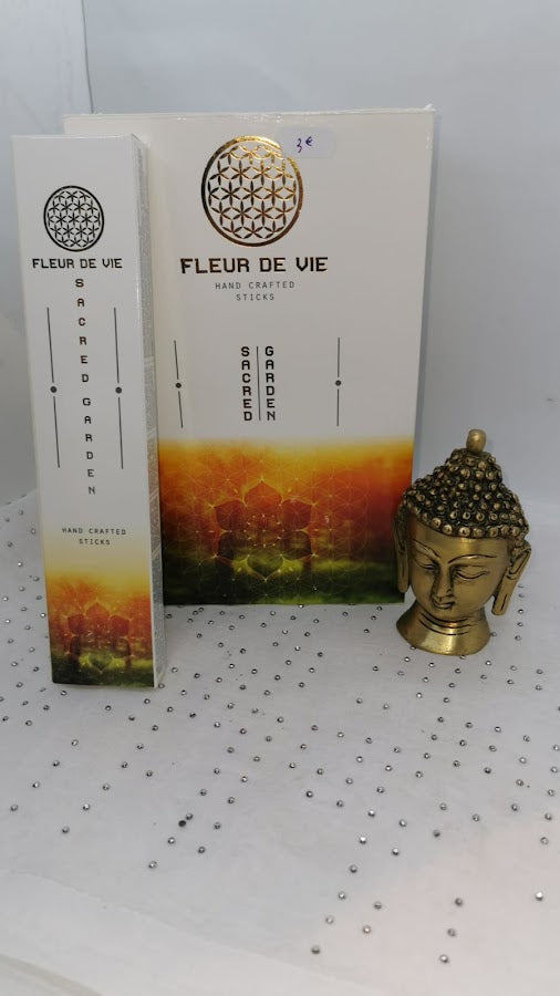 Encens Fleur de vie sacred garden est un encens indien au parfum riche, épicé, et safrané qui évoque l'Inde dans toute sa palette aromatique de parfums et d'épices qui fleurissent dans les jardins sacrés.