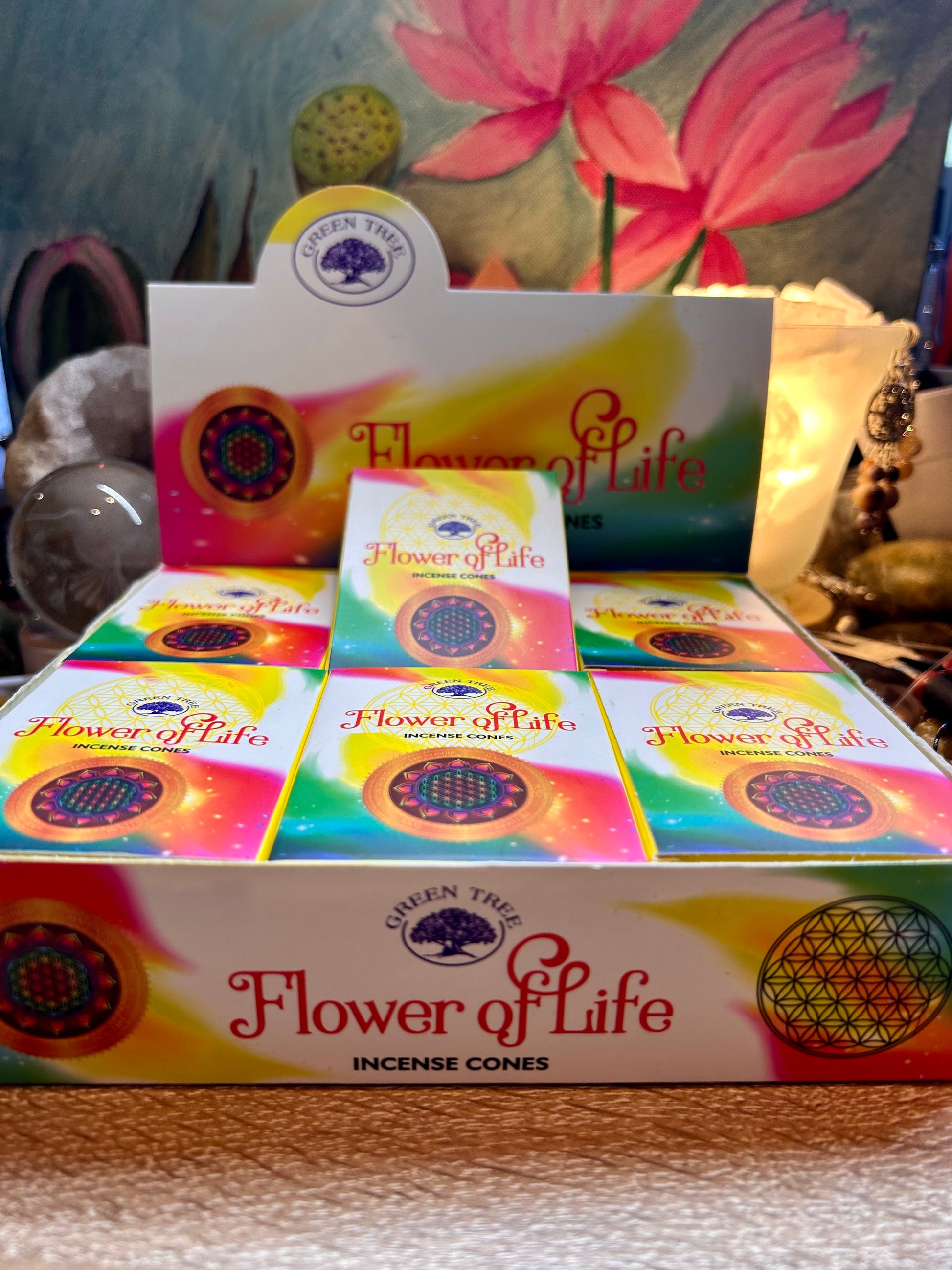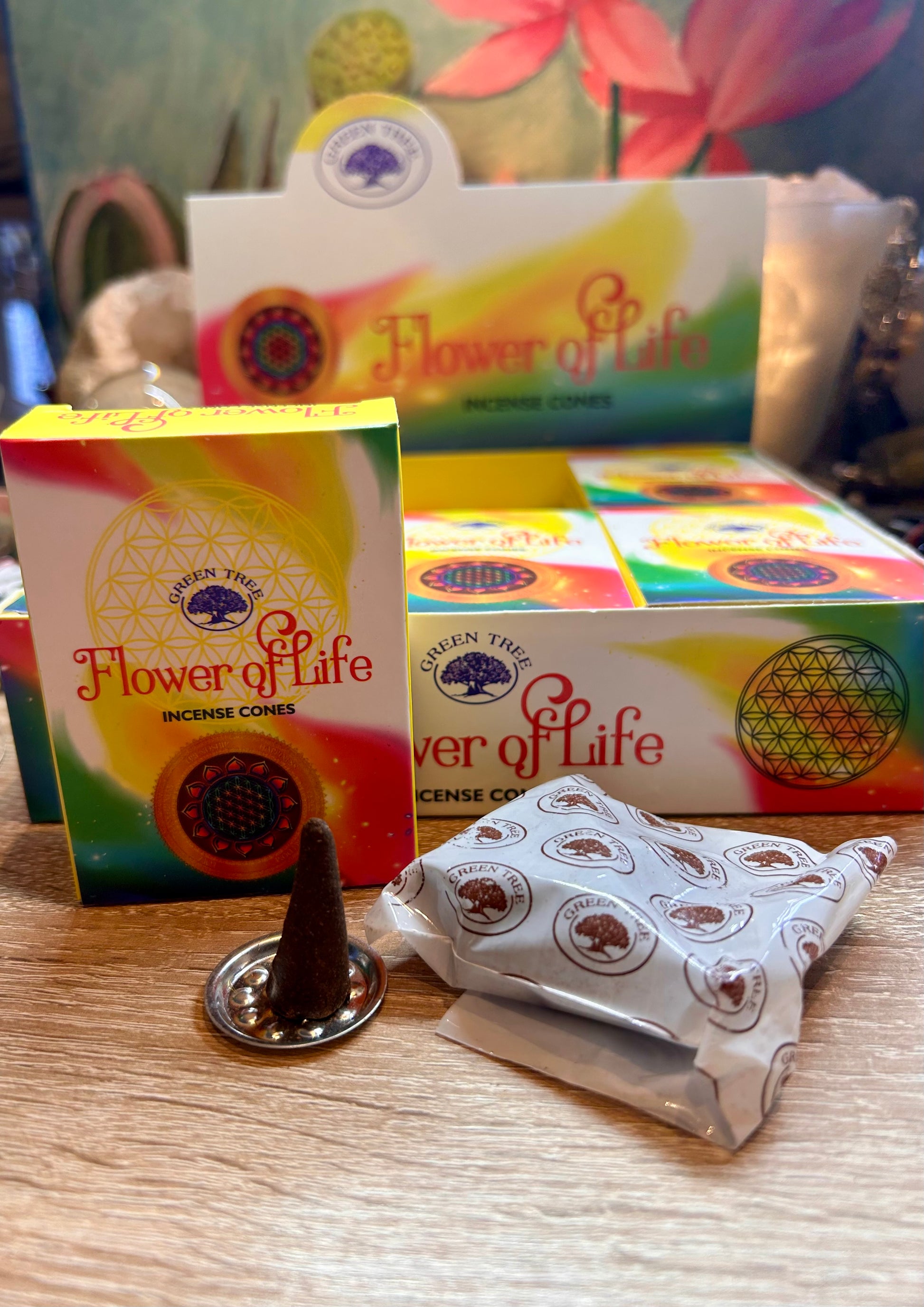 Plongez dans l'énergie vibrante de la Fleur de vie avec les cônes d'encens Flower of life de Green Tree.