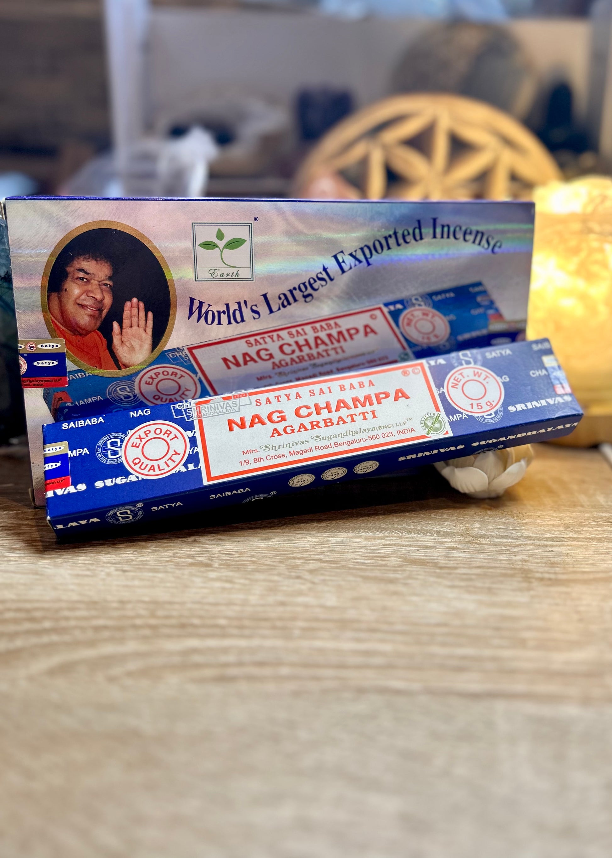 Cette boite bleue de 15 grammes d'encens Satya Saï Baba Nag Champa est un produit incontournable pour tous les amateurs d'encens indien.