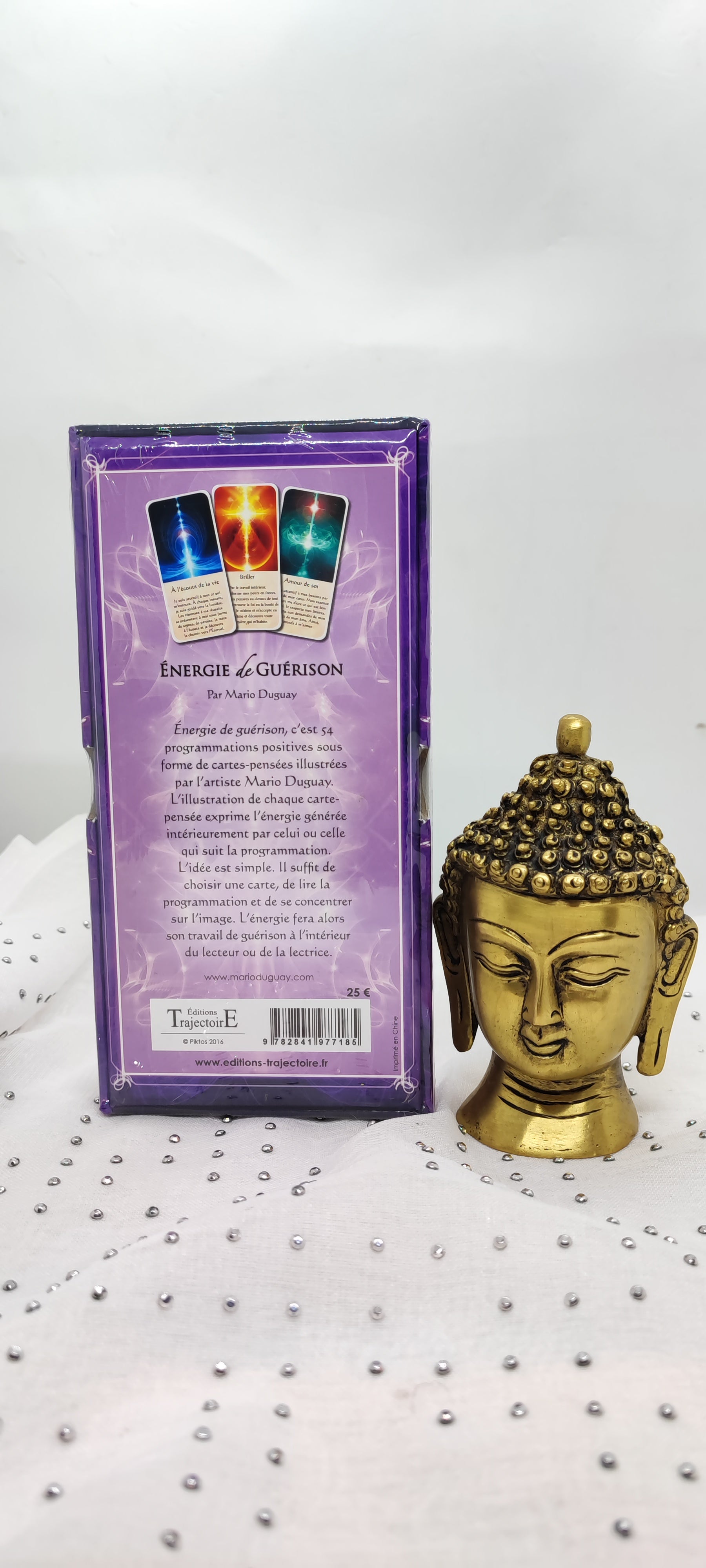 « Énergie de guérison », ce sont 54 programmations positives sous forme de cartes-pensées illustrées par l’artiste Mario Duguay. L’illustration de chaque carte-pensée exprime l’énergie générée intérieurement par celui ou celle qui suit la programmation. L’idée est simple. Il suffit de choisir une carte, de lire la programmation et de se concentrer sur l’image. L’énergie fera alors son travail de guérison à l’intérieur du lecteur ou de la lectrice.