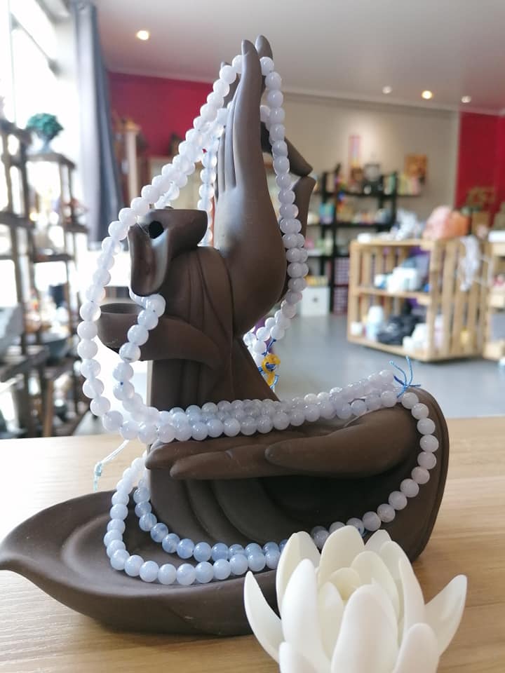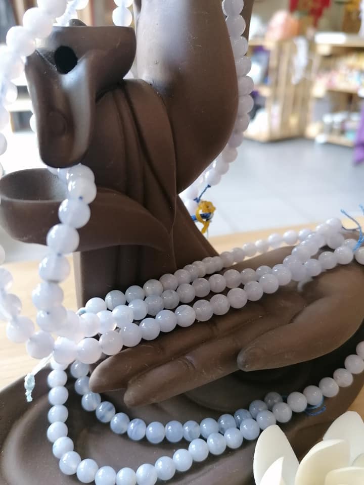 Fil de perles de calcédoine bleue 6mm