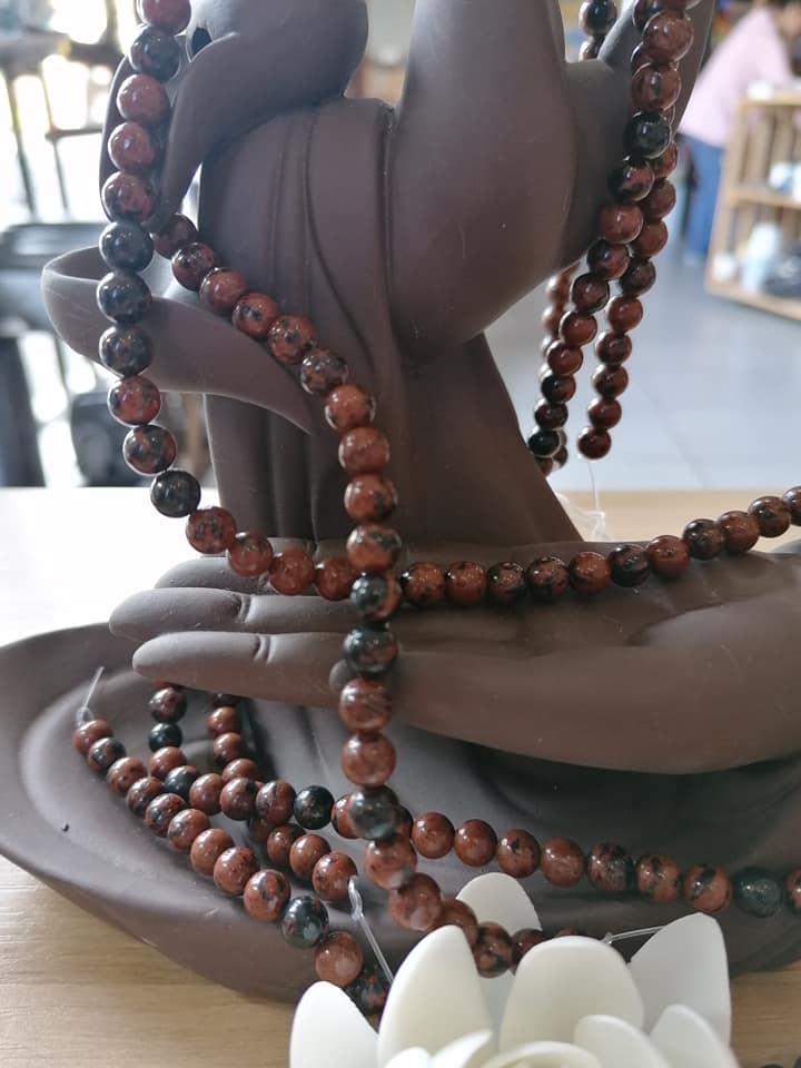 Fil de perles d'obsidienne acajou 6mm