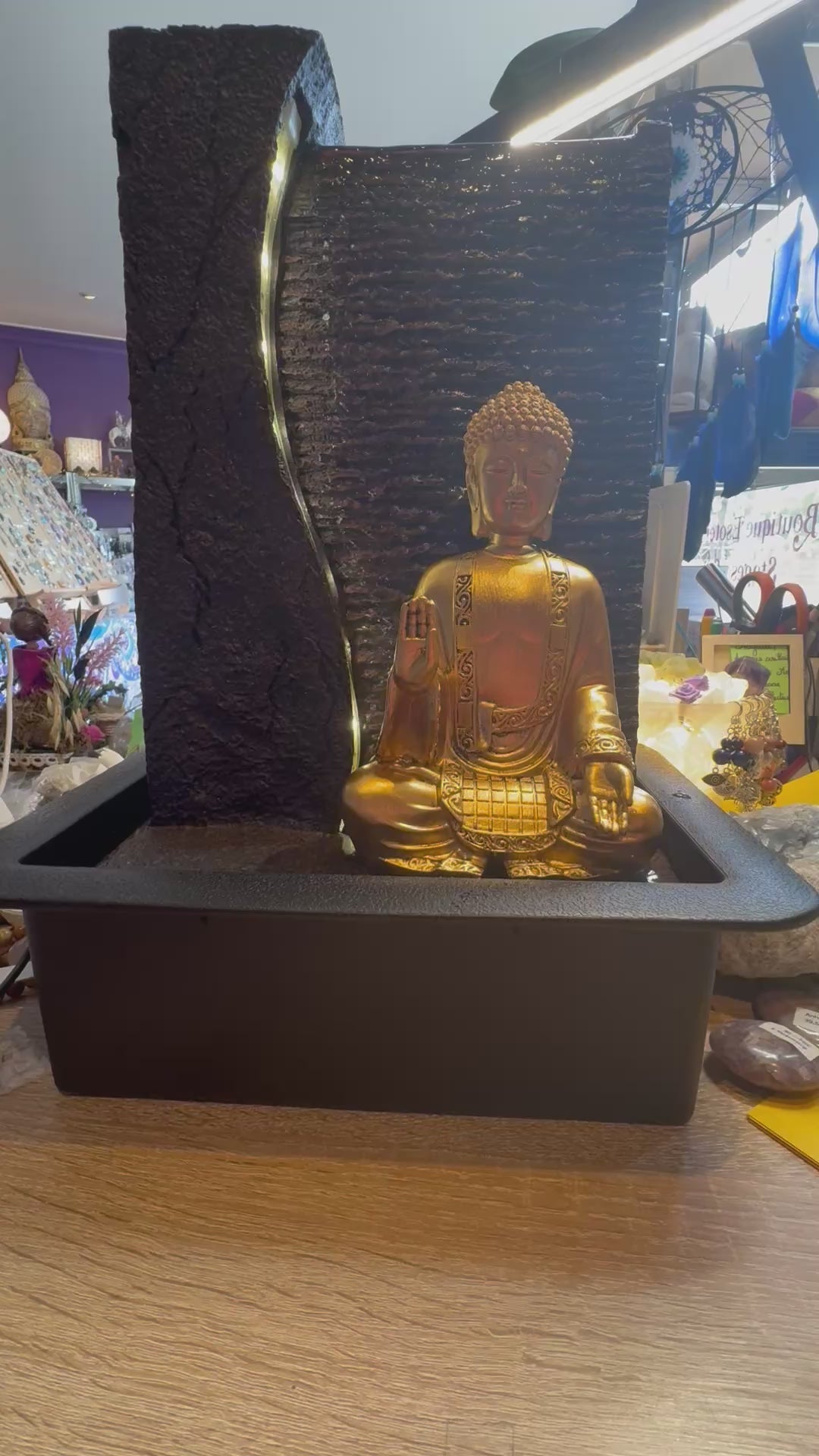 Pour apporter une touche de spiritualité, elle est fournie avec une belle statuette Bouddha qui peut être retirée ou remplacée par une autre statuette ou un autre objet de décoration selon vos envies.