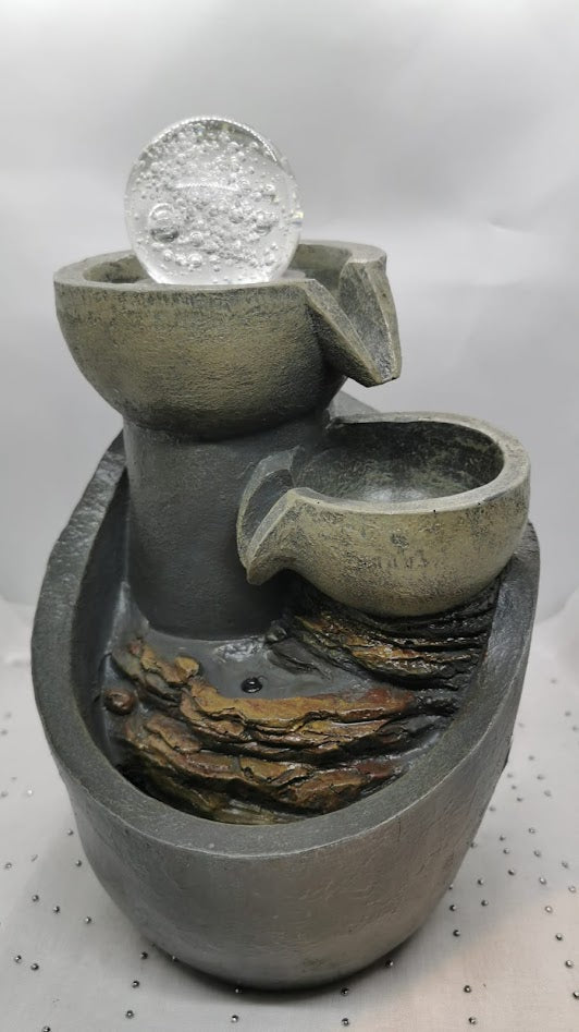 Il s'agit d'une très jolie pièce disposant d’excellentes finitions et d’un décor zen aux lignes harmonieuses. Une fontaine qui utilise le mouvement de l'eau pour entraîner la rotation de la boule en verre et créer un visuel très relaxant avec un écoulement apaisant.