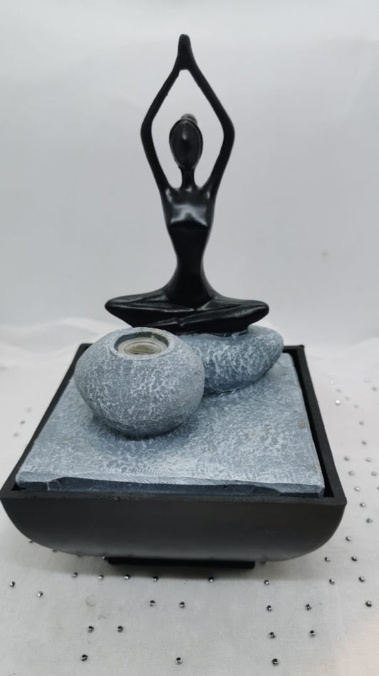 Cette fontaine délaisse le Bouddha pour mettre en avant une discipline de plus en plus pratiquée, le yoga. Un style moderne et épuré pour un modèle peu encombrant s’intégrant facilement dans une déco d’intérieur.