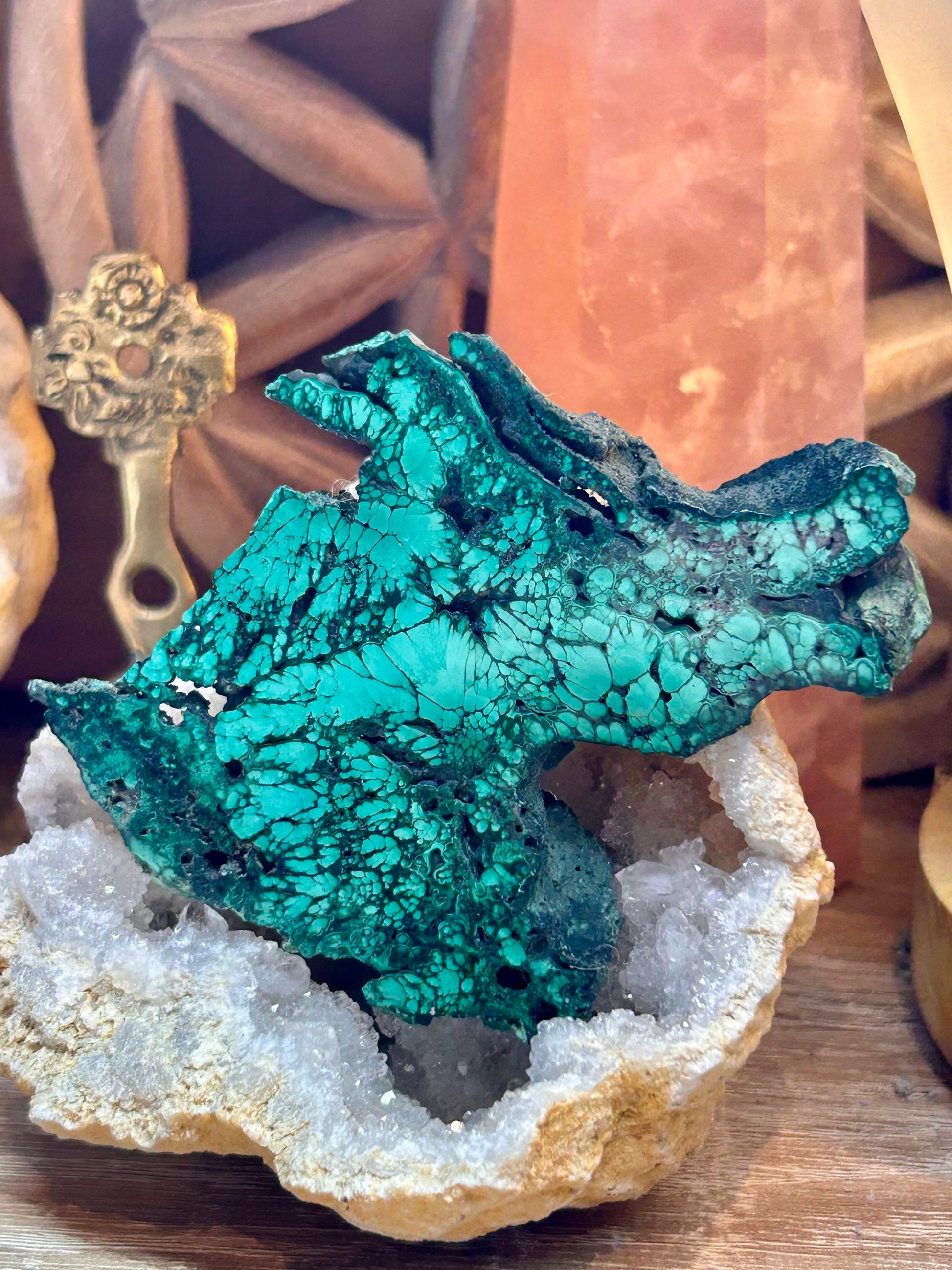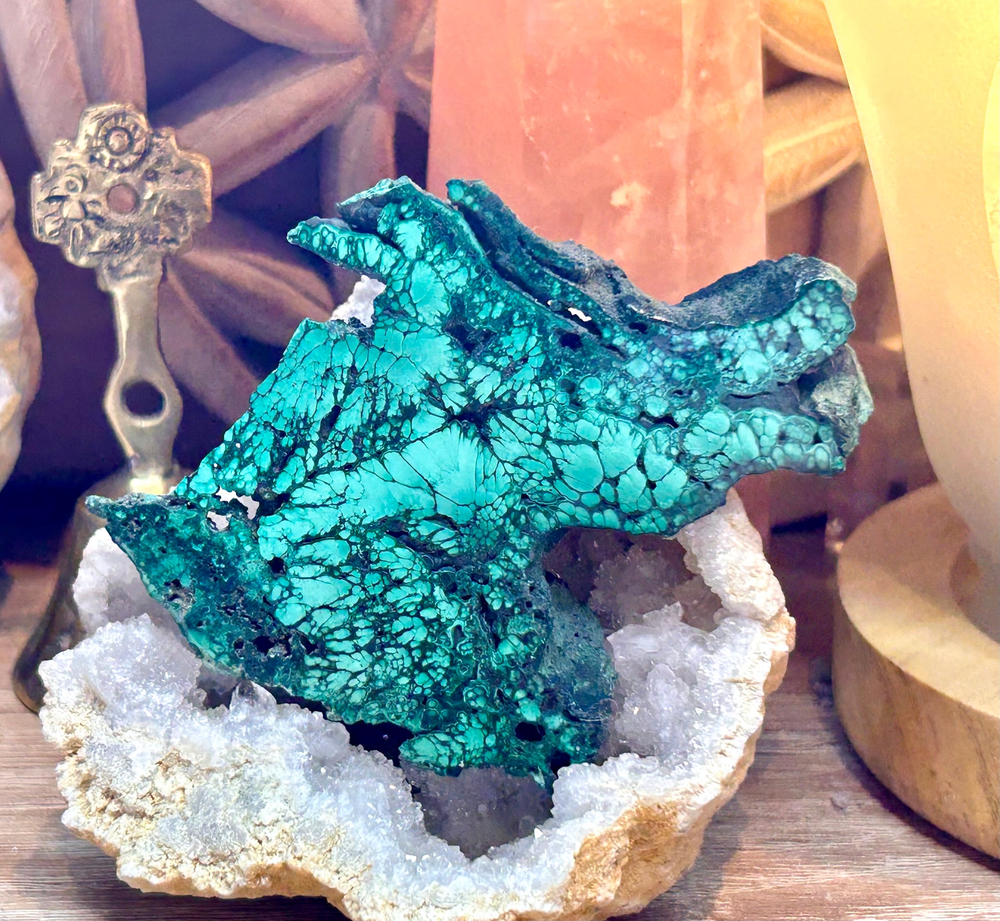 Malachite ou “Le mal quitte”, c’est la pierre de tous les chocs : physiques, émotionnels, psychiques….