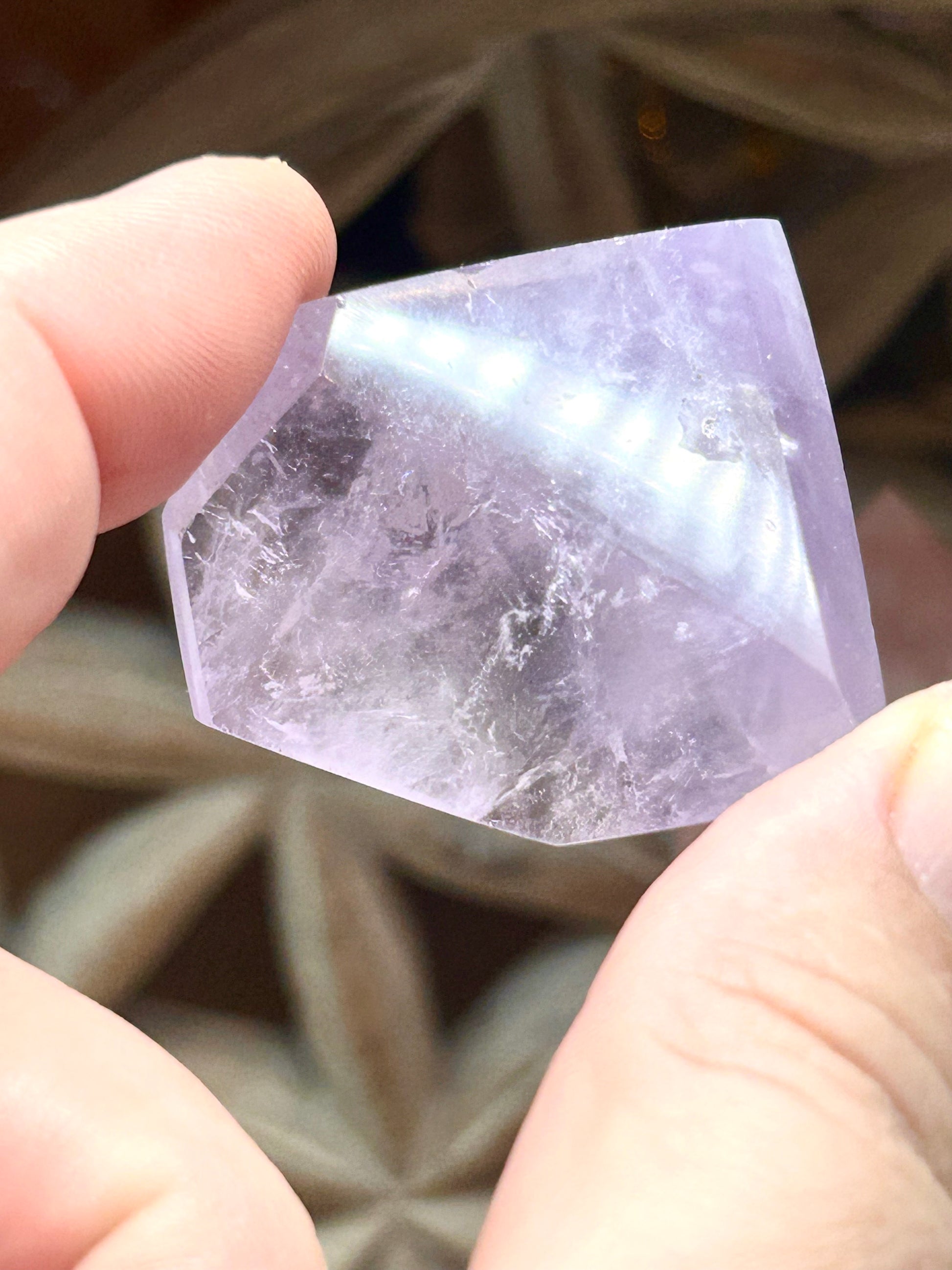 Plan spirituel : L’améthyste contribue au développement de la spiritualité, principalement utilisée pour la méditation, la clairvoyance, les voyages extra-corporels et pour équilibrer les chakras. L’améthyste purifie l’environnement, et est également d’une grande efficacité pour purifier l’âme. Elle diminue les blocages énergétiques et purifie l’aura, ce qui favorise les rêves et l’intuition.