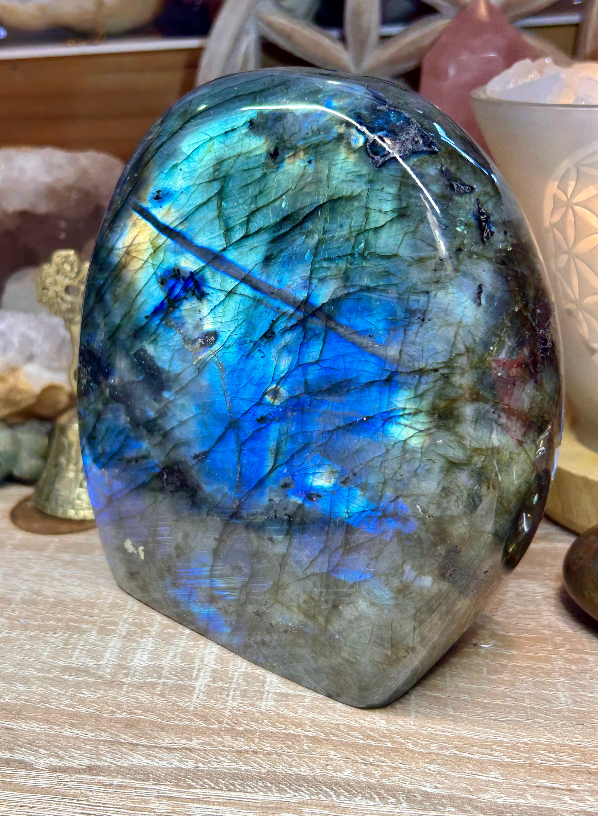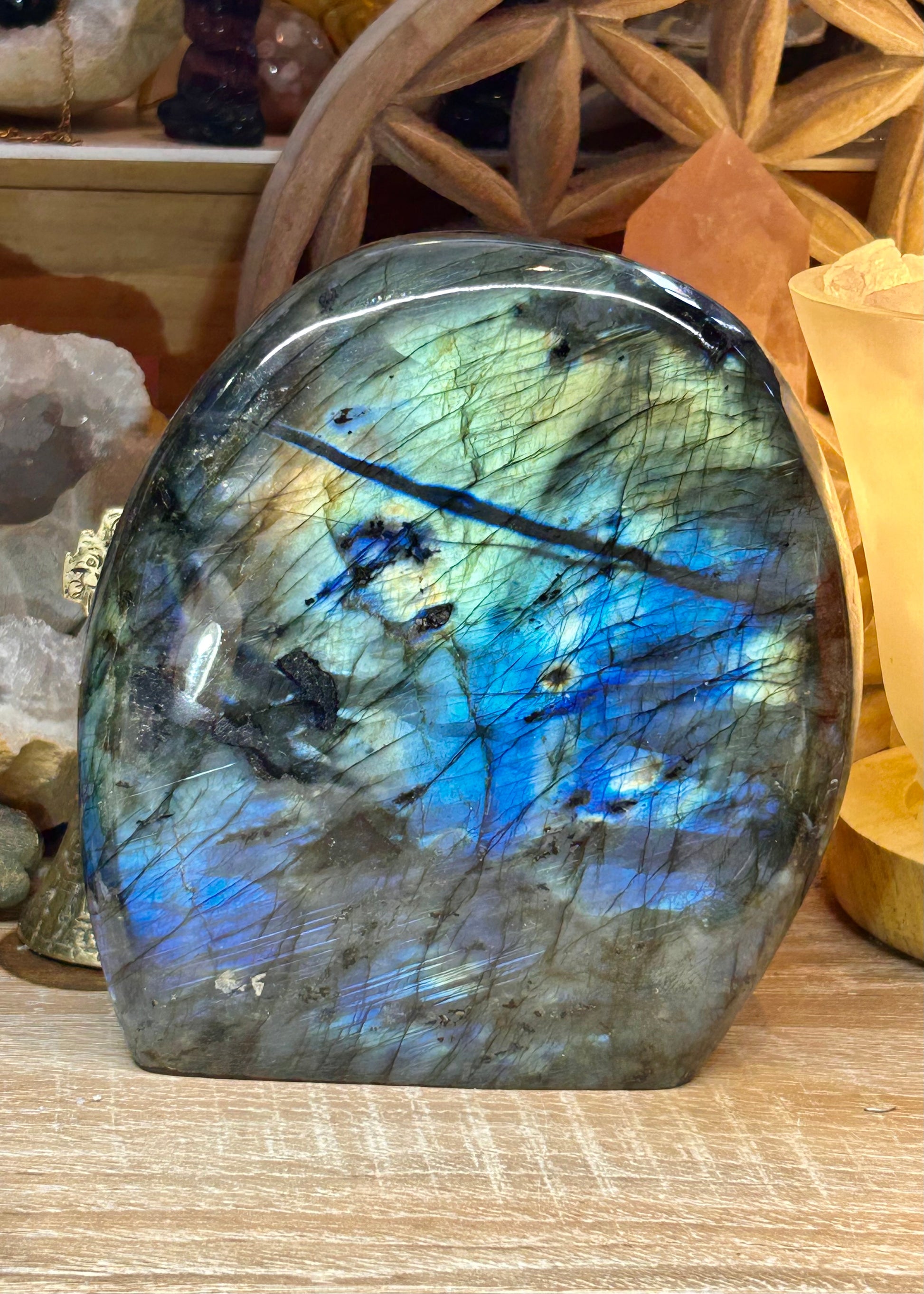 Plan physique : La labradorite est une pierre de protection, elle soulage et aide à récupérer des grandes fatigues physiques et intellectuelles car sa puissance régénératrice est grande.