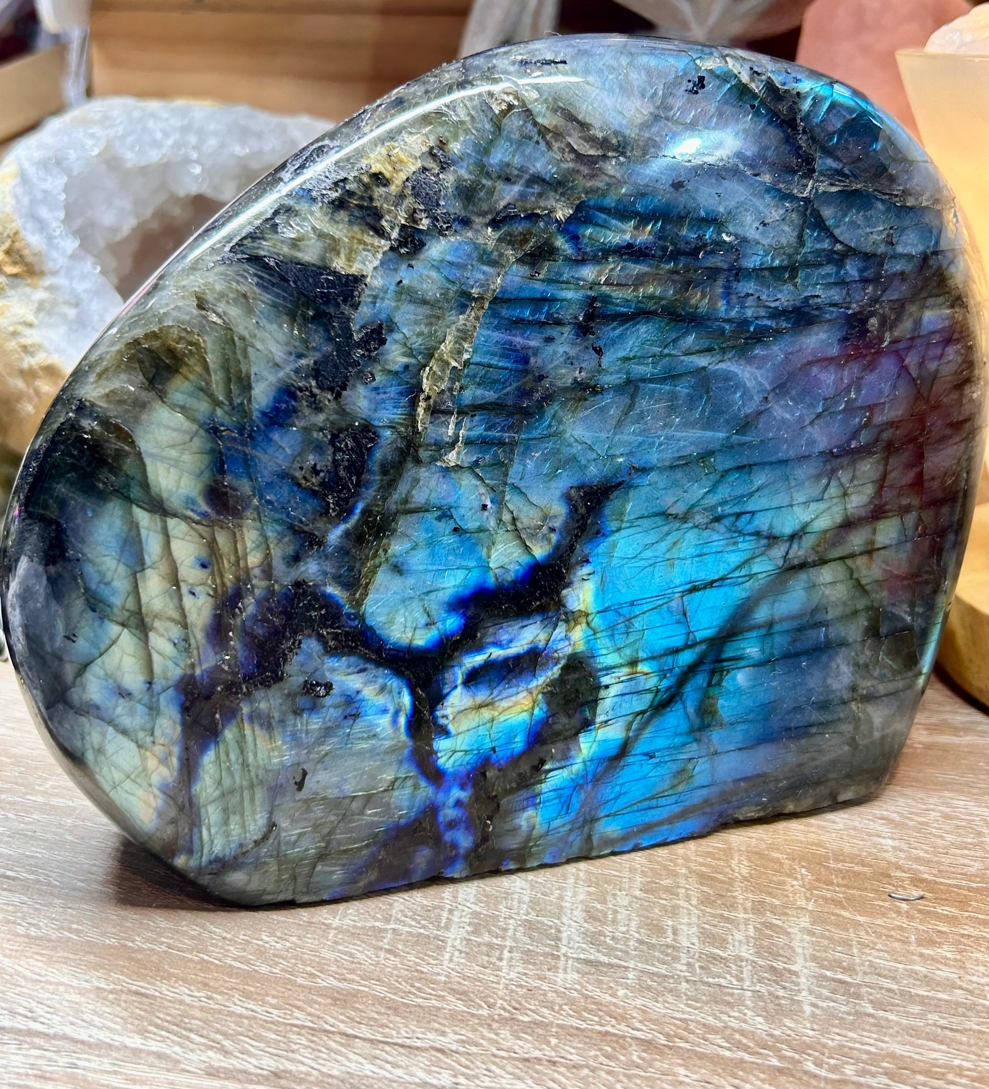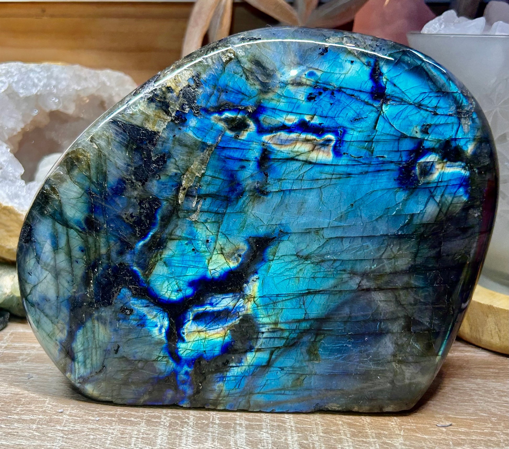 Plan physique : La labradorite est une pierre de protection, elle soulage et aide à récupérer des grandes fatigues physiques et intellectuelles car sa puissance régénératrice est grande.
