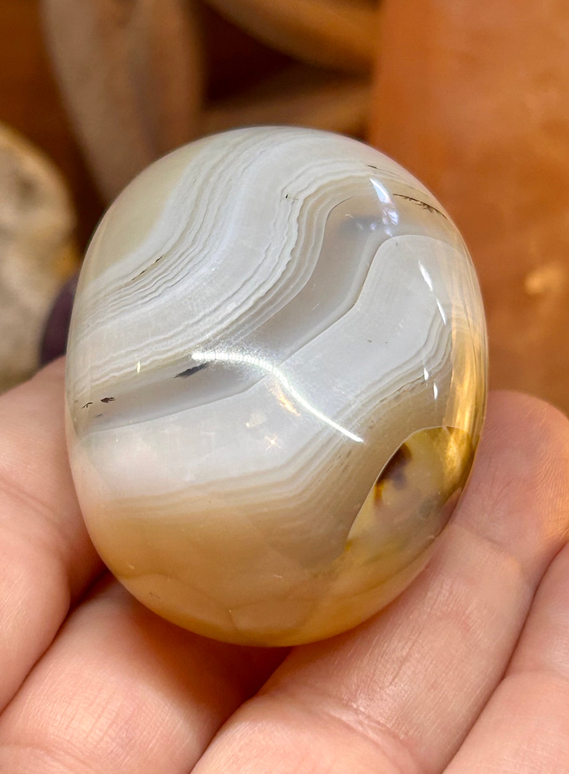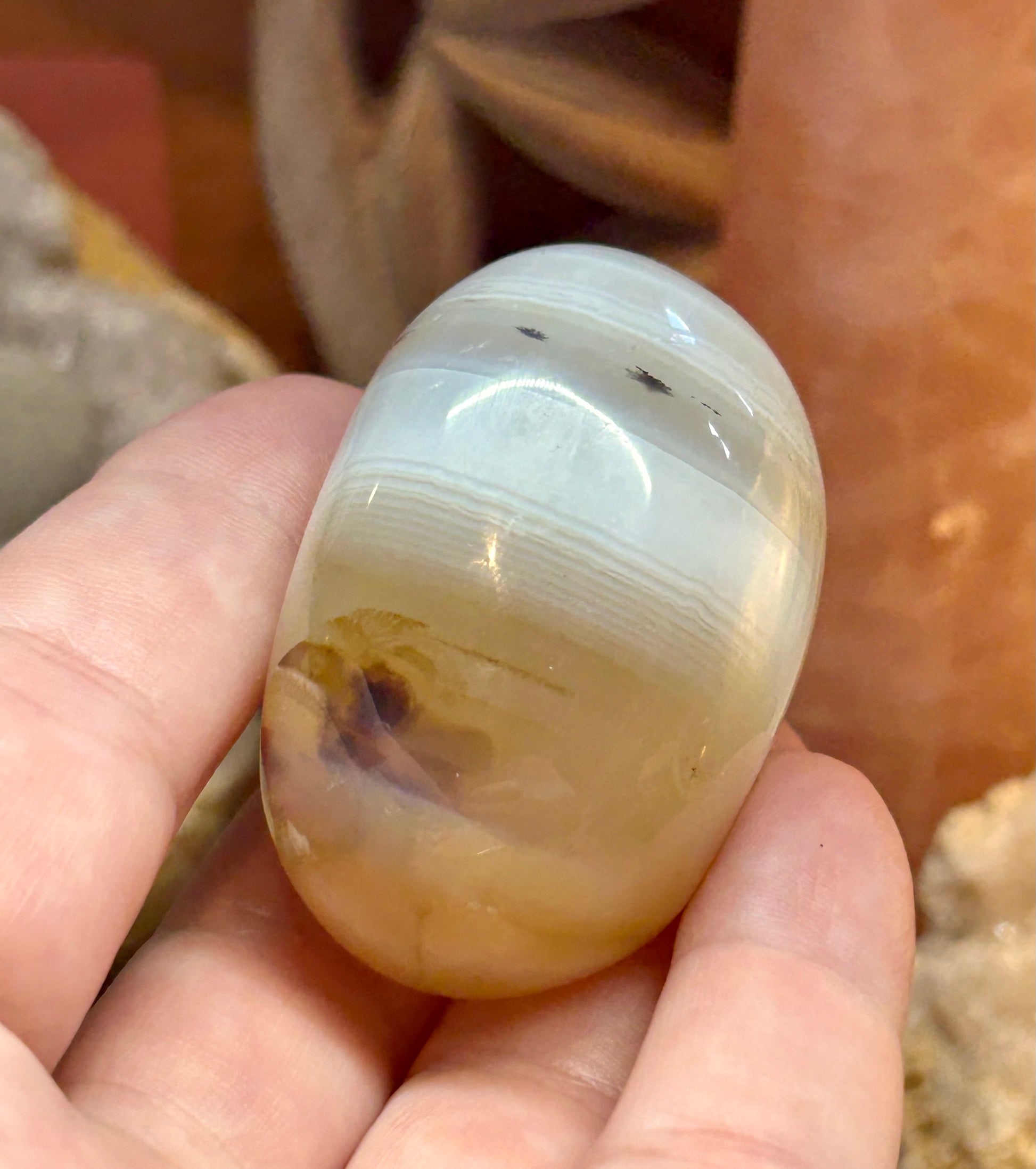 Plan spirituel : Pierre d’ancrage, elle est parfaite pour centrer l’énergie. L’Agate fait le pont entre le ciel et la terre, c’est la pierre de la clairvoyance et de la contemplation. Elle stimule le développement spirituel. Durant une méditation, elle agit à l’image de ses couches : elle vous dirige vers une connexion profonde, dans vos expériences de vie pour y rechercher le meilleur, laissant les difficultés derrière.