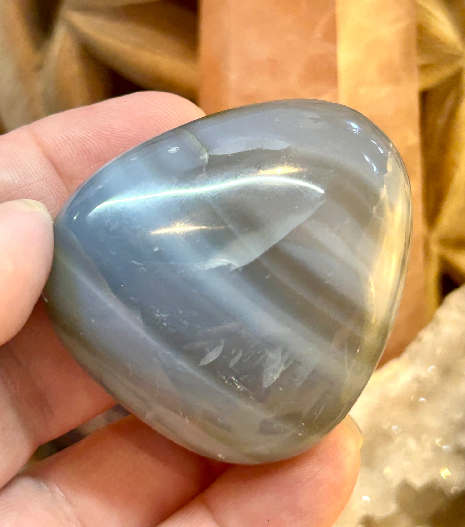 Plan spirituel : Pierre d’ancrage, elle est parfaite pour centrer l’énergie. L’Agate fait le pont entre le ciel et la terre, c’est la pierre de la clairvoyance et de la contemplation. Elle stimule le développement spirituel. Durant une méditation, elle agit à l’image de ses couches : elle vous dirige vers une connexion profonde, dans vos expériences de vie pour y rechercher le meilleur, laissant les difficultés derrière.