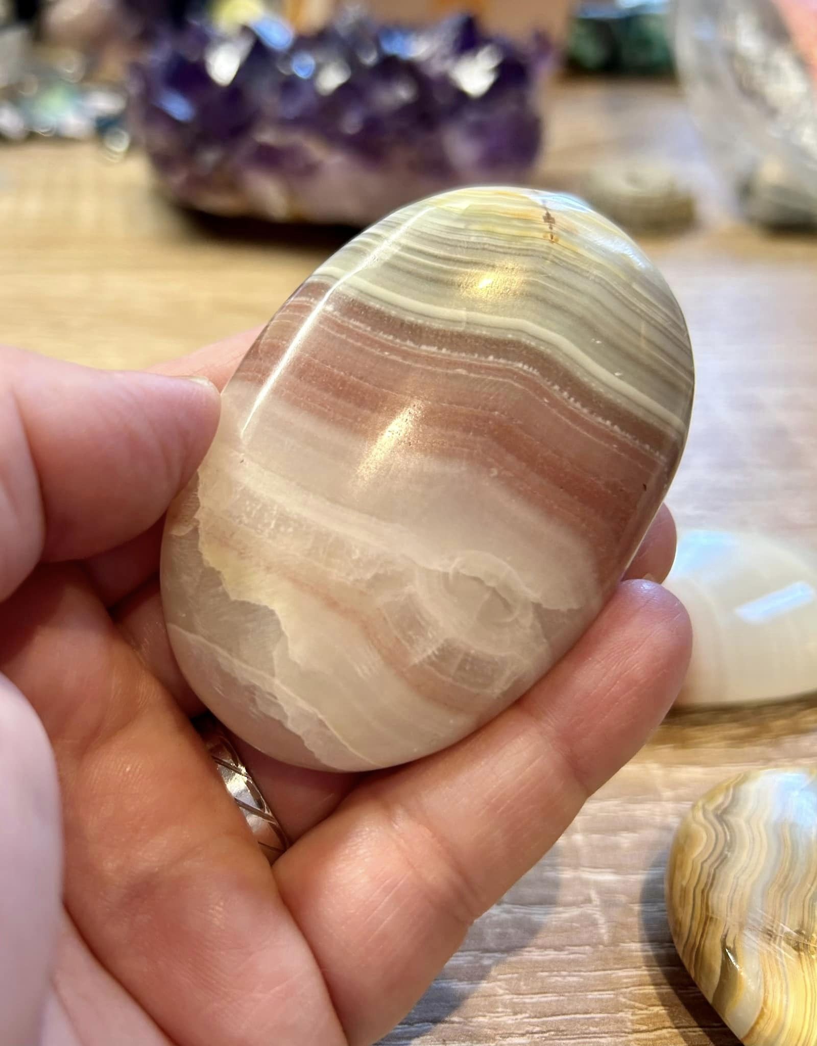 La pierre d'Onyx est composée d'une multitude de bandes colorées.