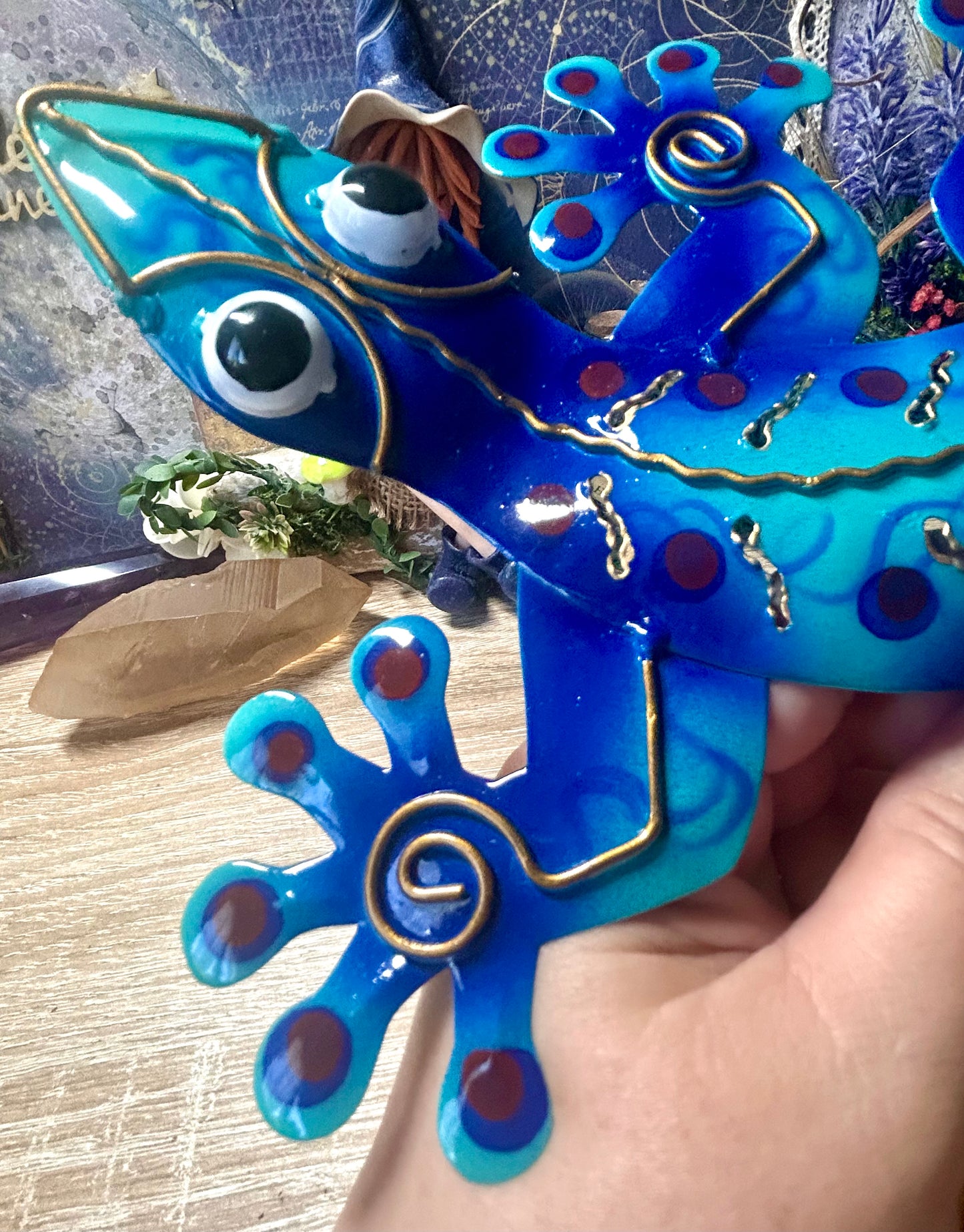 Gecko bleu en métal à accrocher
