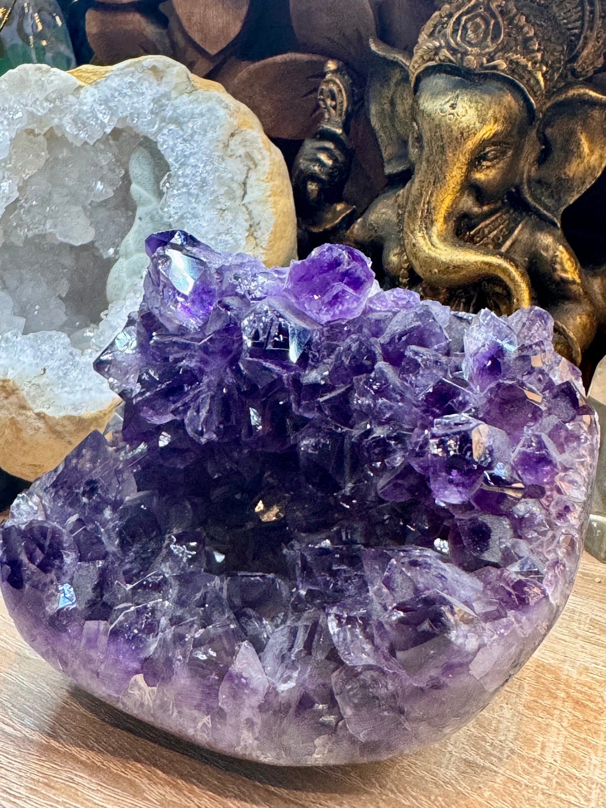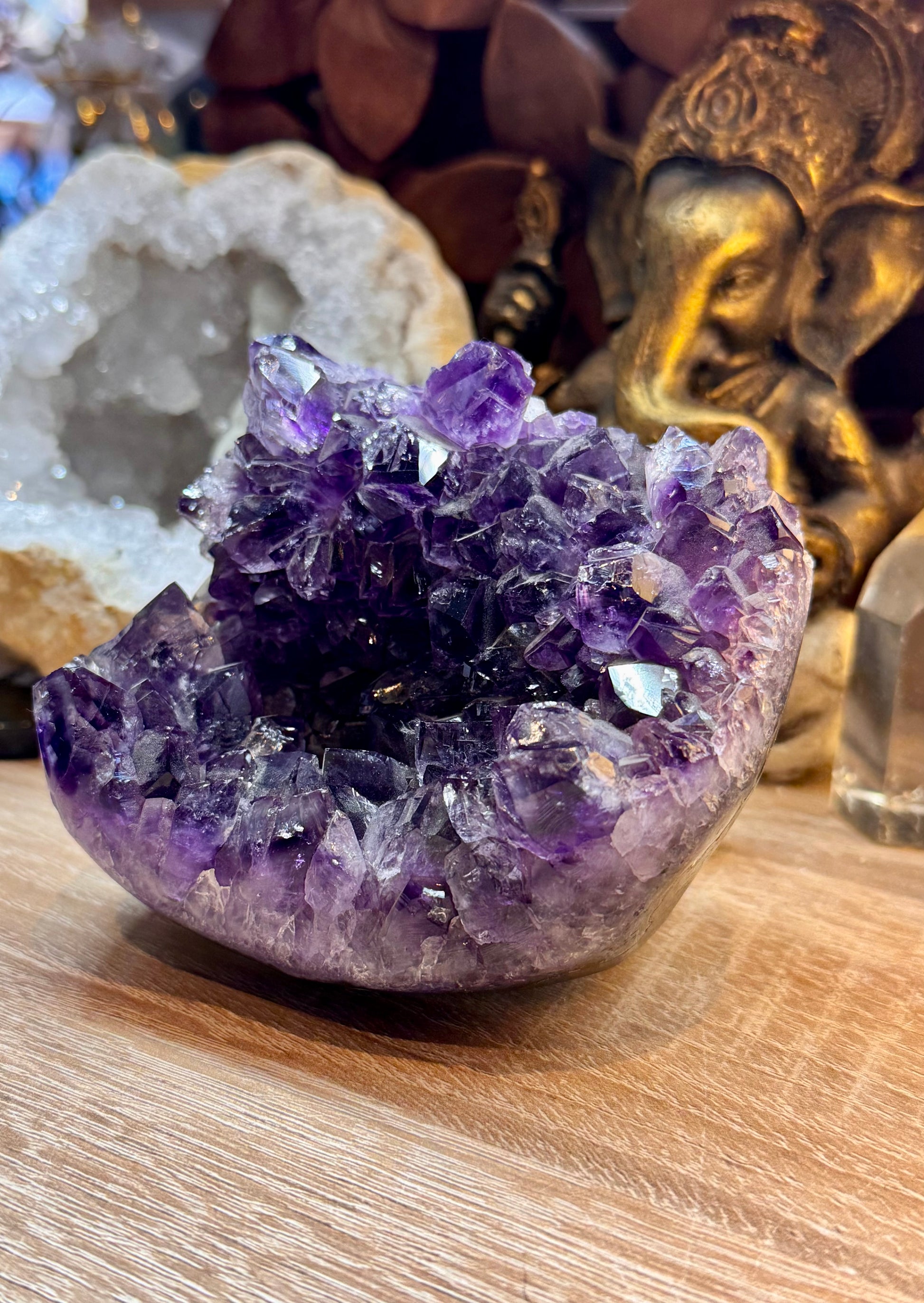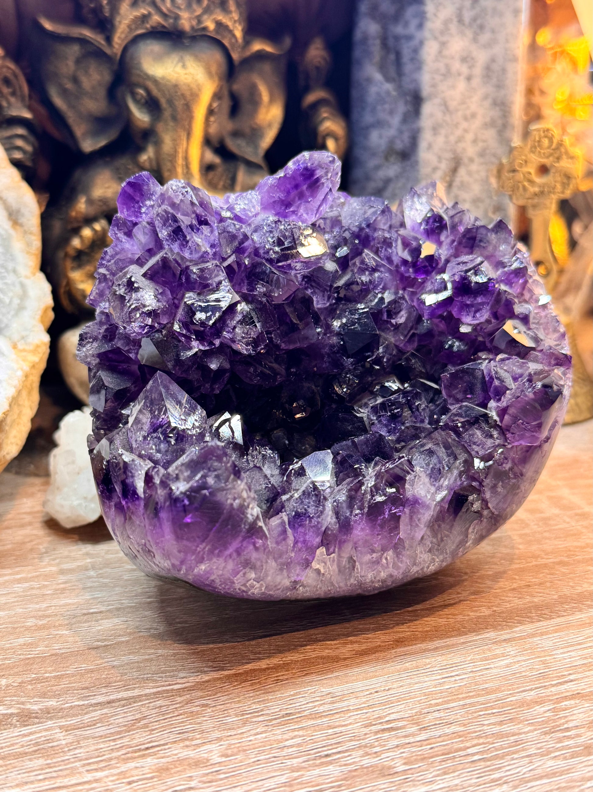 Puissante et protectrice, l’améthyste élève la vibration énergétique du lieu où elle se trouve.