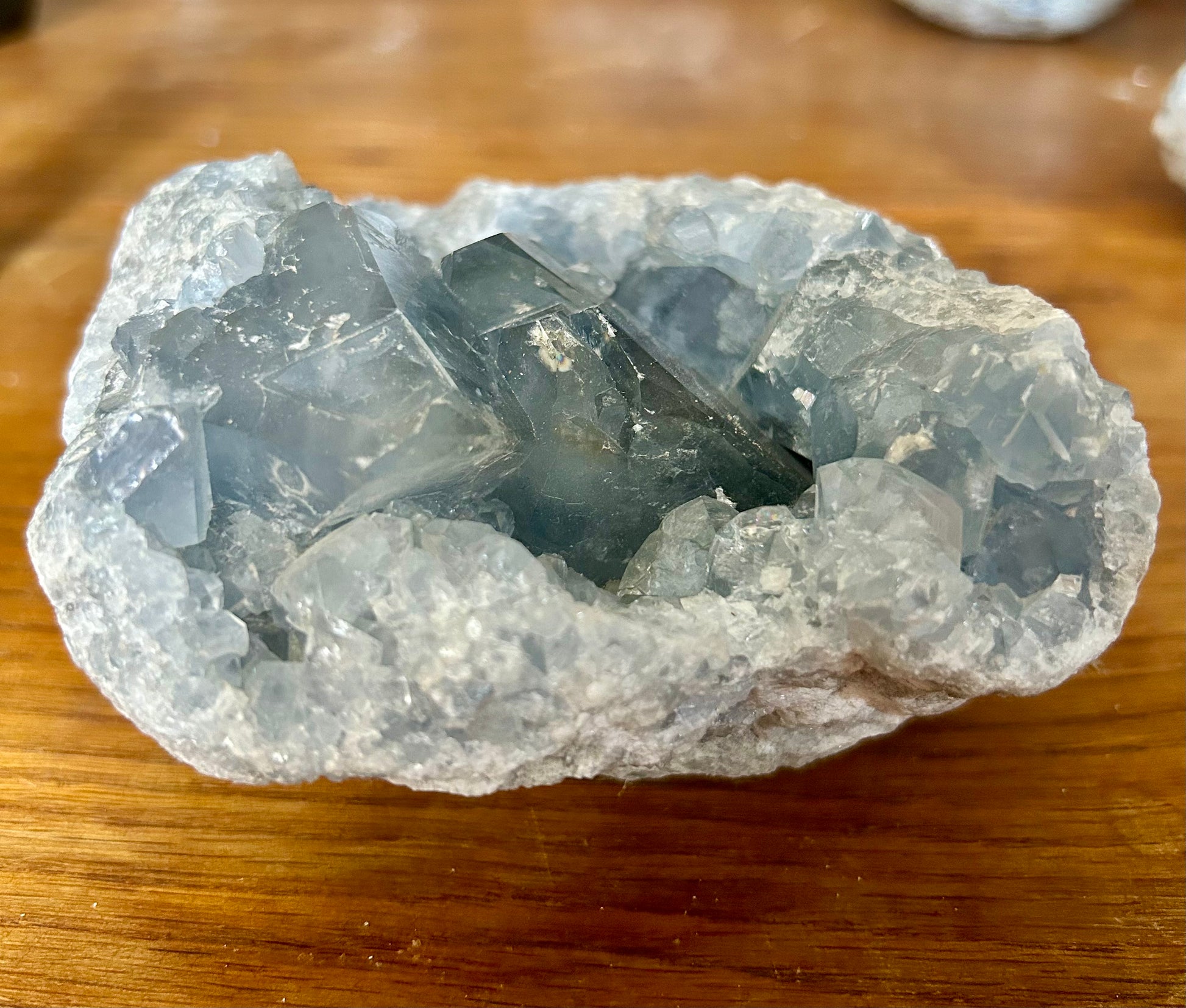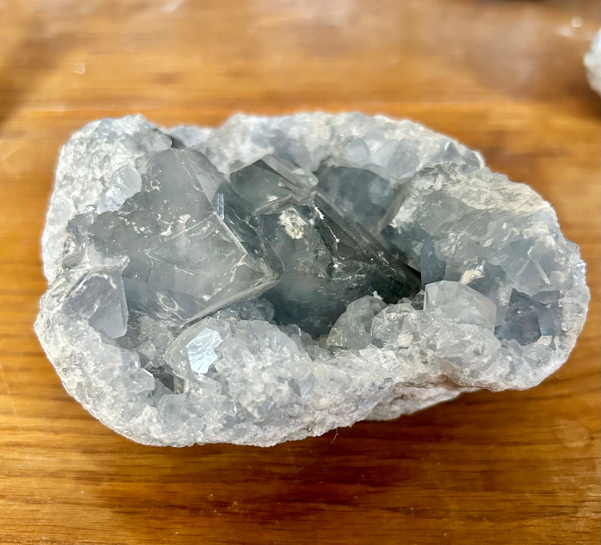 La célestine ou célestite est surnommée la « Pierre des Anges », elle symbolise la douceur, la paix et la méditation.