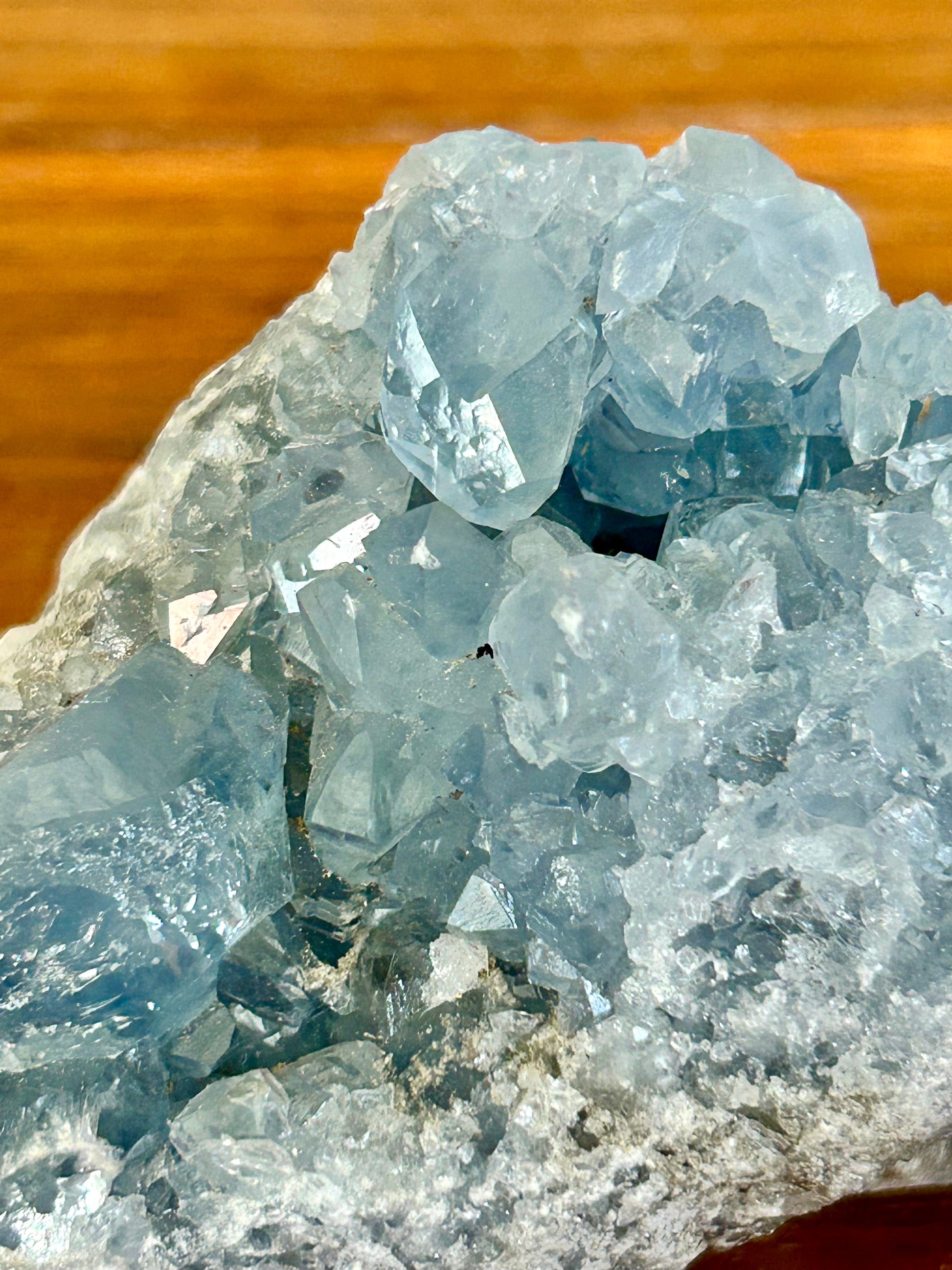 Plan émotionnel : La Célestine, c’est une pierre réconfortante et apaisante, elle apporte la tendresse maternelle tout en agissant avec douceur. Elle relaxe aussi les tensions et calme l’esprit. (idéale pour les enfants).