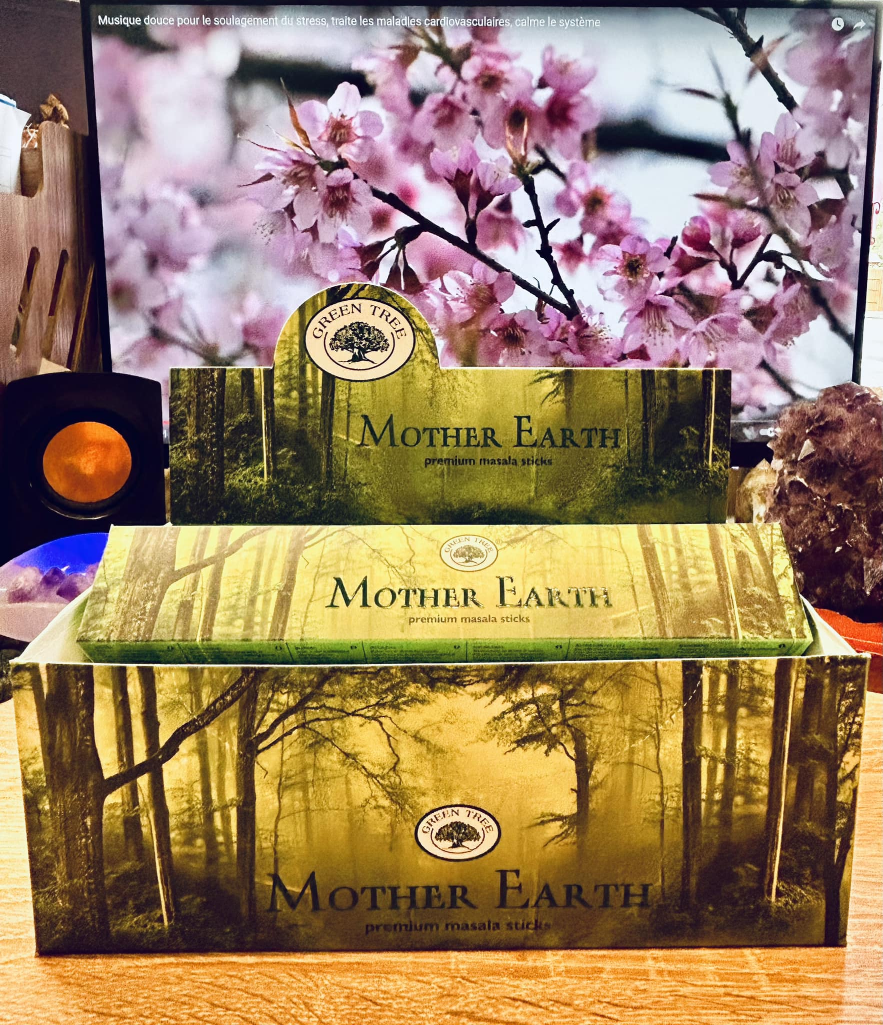 L'encens Mother Earth est composé d'une base de Patchouli, avec des pointes de vanille et miel.