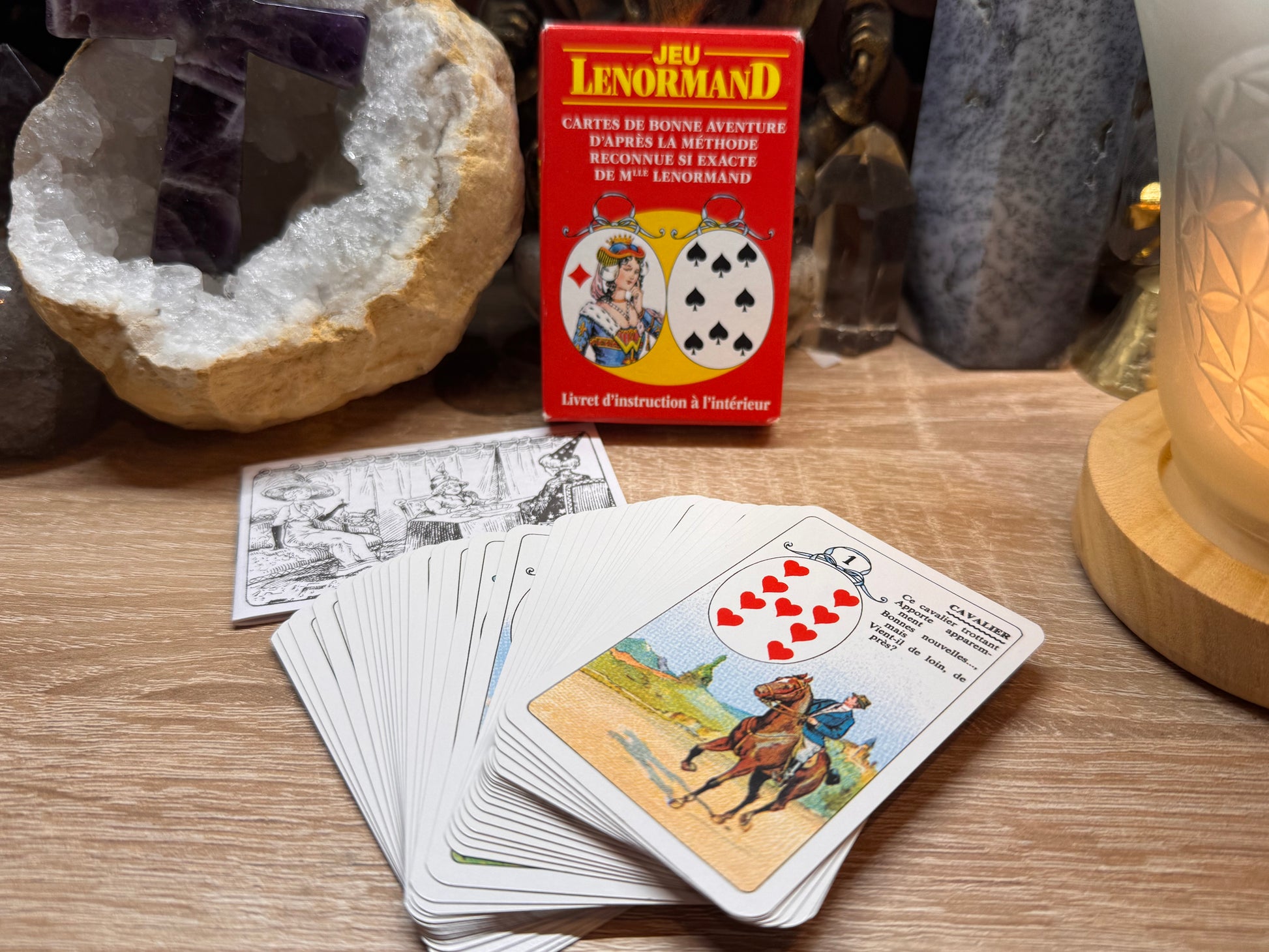 Chaque carte est une fenêtre ouverte sur les mystères et les messages de l'univers. Le Jeu Lenormand est un héritage des pratiques divinatoires de Mlle Lenormand, offrant un lien direct avec l'intuition et les forces subtiles qui influencent notre quotidien.