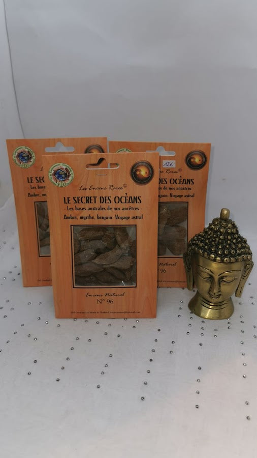 Les bases australes de nos ancêtres. Ambre, myrrhe, benjoin, favorise le Voyage astral. Sachet de 25 gr.