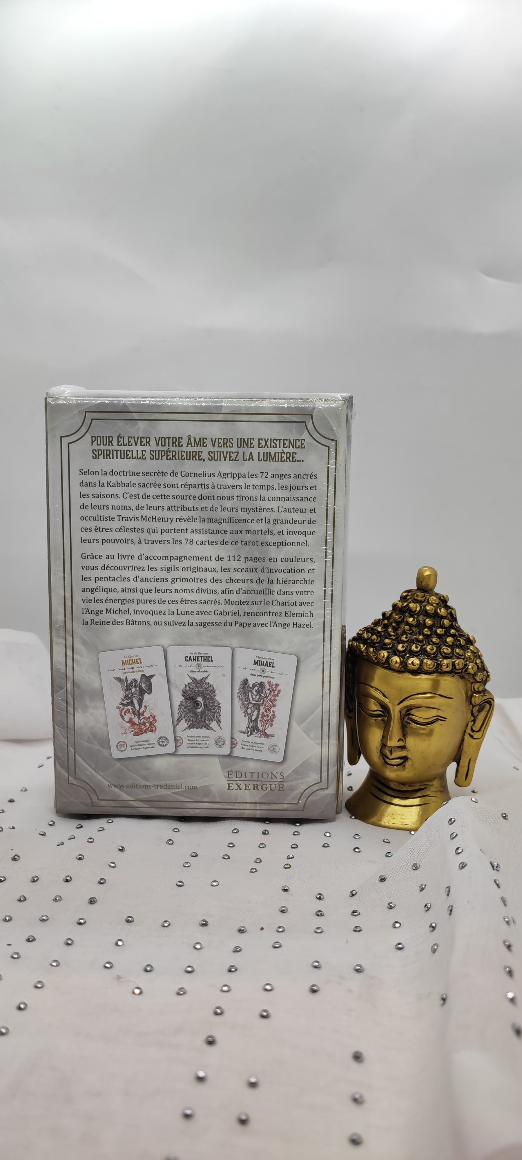 Pour élever votre âme vers une existence spirituelle supérieure, suivez la lumière… Selon la doctrine secrète de Cornelius Agrippa, ancrée dans la Kabbale sacrée, les 72 anges du Schemhamephorash sont répartis à travers les temps, les jours et les saisons. C’est de cette source que nous tirons la connaissance de leurs noms, de leurs attributs et de leurs mystères. L’auteur et occultiste Travis McHenry révèle la magnificence et la grandeur de ces êtres célestes qui portent assistance aux mortels, et invoque leurs pouvoirs à travers les 78 cartes d'enseignement de ce tarot exceptionnel.