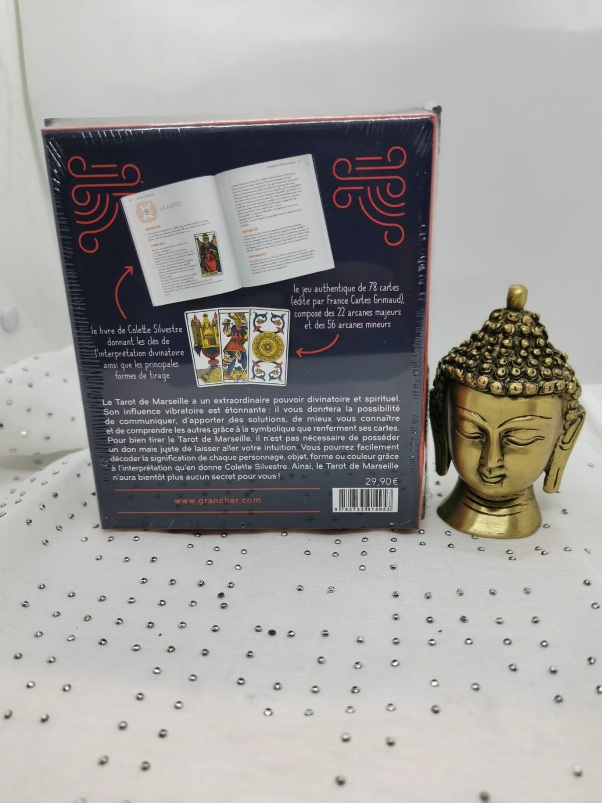 Le Tarot de Marseille a un extraordinaire pouvoir divinatoire et spirituel. Son influence vibratoire est étonnante : il vous donnera la possibilité de communiquer, d’apporter des solutions, de mieux vous connaître et de comprendre les autres grâce à la symbolique que renferment ses cartes. Pour bien tirer le Tarot de Marseille, il n’est pas nécessaire de posséder un don mais juste de laisser aller votre intuition. Vous pourrez facilement décoder la signification de chaque personnage, objet, forme ou couleur grâce à l’interprétation qu’en donne Colette Silvestre. Ainsi, le Tarot de Marseille n’aura bientôt plus aucun secret pour vous ! Ce coffret comprend : un jeu authentique de 78 cartes, composé des 22 arcanes majeurs et des 56 arcanes mineurs. Le livre de Colette Silvestre donnant les clés de l'interprétation divinatoire ainsi que les principales formes de tirages.