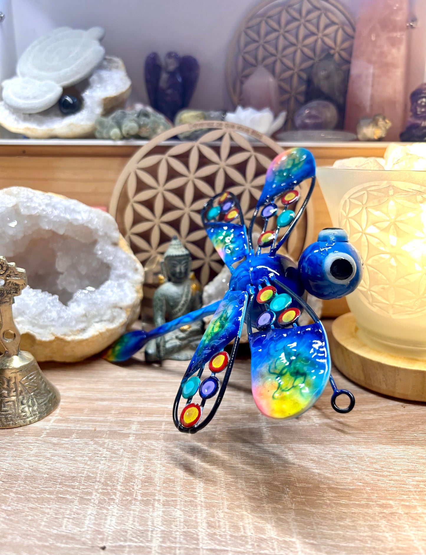 La Libellule, c’est la médecine du rêve et de la façade illusoire que nous prenons pour la réalité physique. Avec ses ailes iridescentes, l’élégante nous renvoie à des couleurs introuvables dans notre vie quotidienne. Quand la Libellule transforme ses couleurs, son énergie, sa forme et ses mouvements, l’esprit de l’observateur explose et il y surgit de vagues souvenirs d’un temps ou d’un espace où la magie régnait.