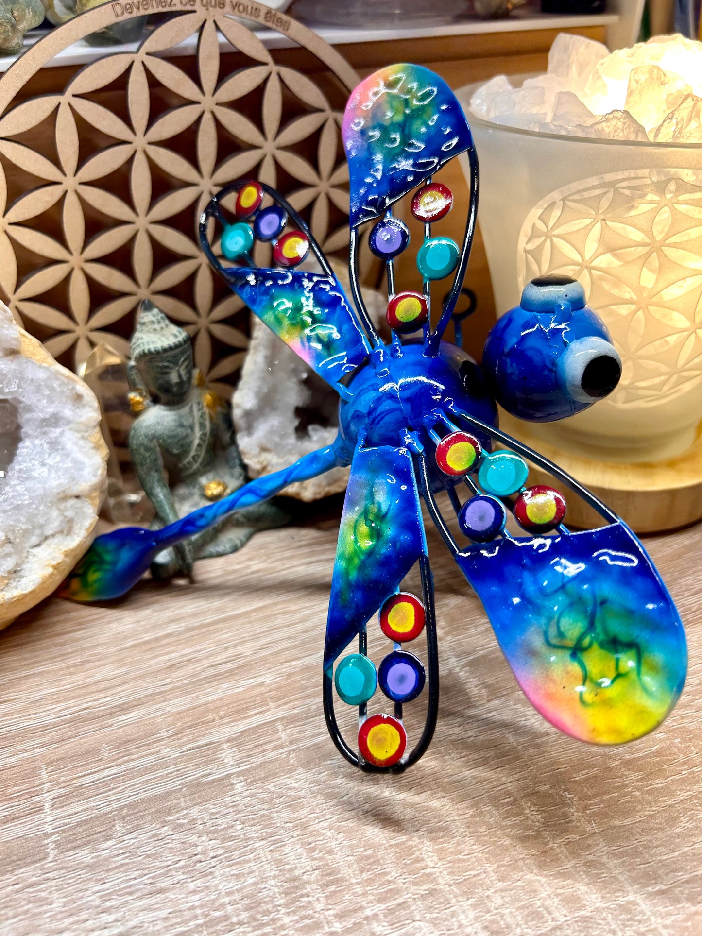 Libellule bleue en acier à accrocher