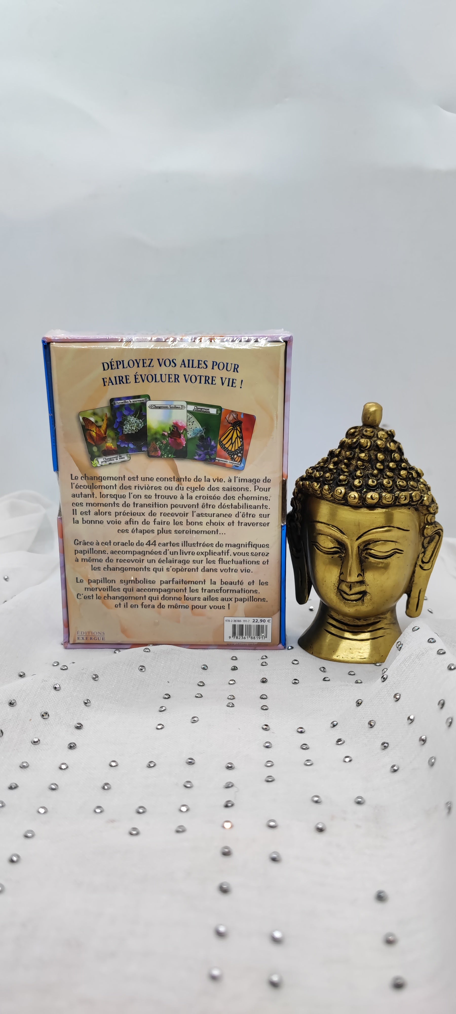 Il est alors essentiel de faire les bons choix afin de traverser ces étapes plus sereinement… Grâce à cet oracle de 44 cartes d'enseignement illustrées de papillons accompagnées d’un livre explicatif, vous serez à même de recevoir un éclairage sur les fluctuations et les changements qui s’opèrent dans votre vie.