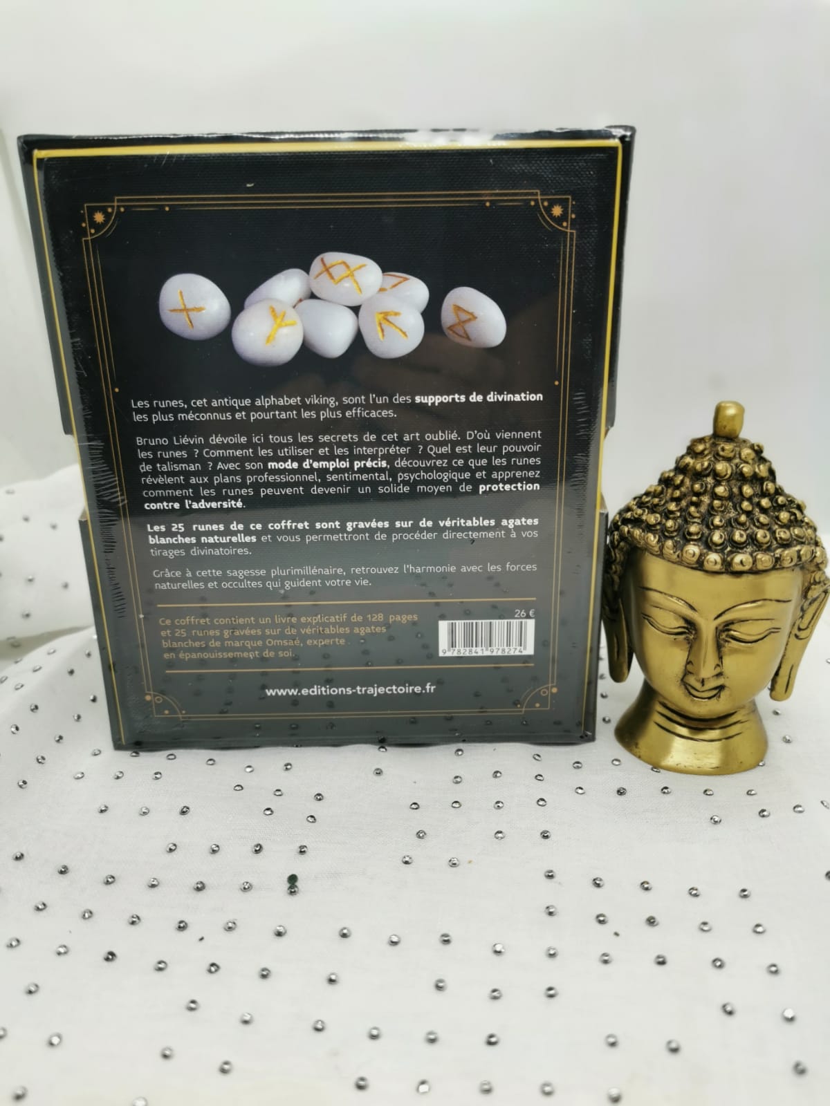 Les runes, cet antique alphabet viking, sont l'un des supports de divination les plus méconnus et pourtant les plus efficaces. Bruno Liévin dévoile ici tous les secrets de cet art oublié. D'où viennent les runes ? Comment les utiliser et les interpréter ? Quel est leur pouvoir de talisman ? Avec son mode d'emploi précis, découvrez ce que les runes révèlent aux plans professionnel, sentimental, psychologique et apprenez comment les runes peuvent devenir un solide moyen de protection contre l'adversité. Les 25 runes de ce coffret sont gravées sur de véritables agates blanches naturelles et vous permettront de procéder directement à vos tirages divinatoires. Grâce à cette sagesse plurimillénaire, retrouvez l'harmonie avec les forces naturelles et occultes qui guident votre vie.