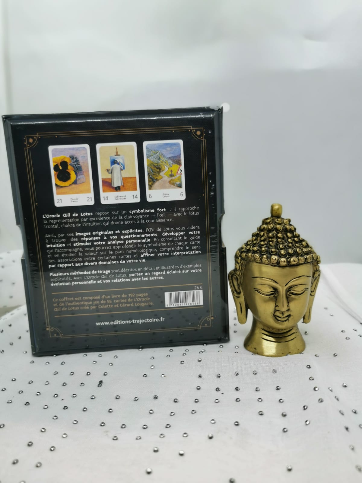 L’Oracle Œil de Lotus repose sur un symbolisme fort : il rapproche la représentation par excellence de la clairvoyance – l’œil – avec le lotus frontal, chakra de l’intuition qui donne accès à la connaissance. Ainsi, par ses images originales et explicites, l’Oeil de Lotus vous aidera à trouver des réponses à vos questionnements, développer votre intuition et stimuler votre analyse personnelle. En consultant le guide qui l’accompagne, vous pourrez approfondir le symbolisme de chaque carte et en étudier la valeur sur le plan numérologique, comprendre le sens des associations entre certaines cartes et affiner votre interprétation par rapport aux divers domaines de votre vie. Plusieurs méthodes de tirage sont décrites en détail et illustrées d’exemples explicatifs. Avec l’Oracle Œil de Lotus, portez un regard éclairé sur votre évolution personnelle et vos relations avec les autres. Ce coffret est composé d’un livre de 192 pages et de l’authentique jeu de 55 cartes de L’Oracle Œil de Lotus créé par Colette et Gérard Lougarre.