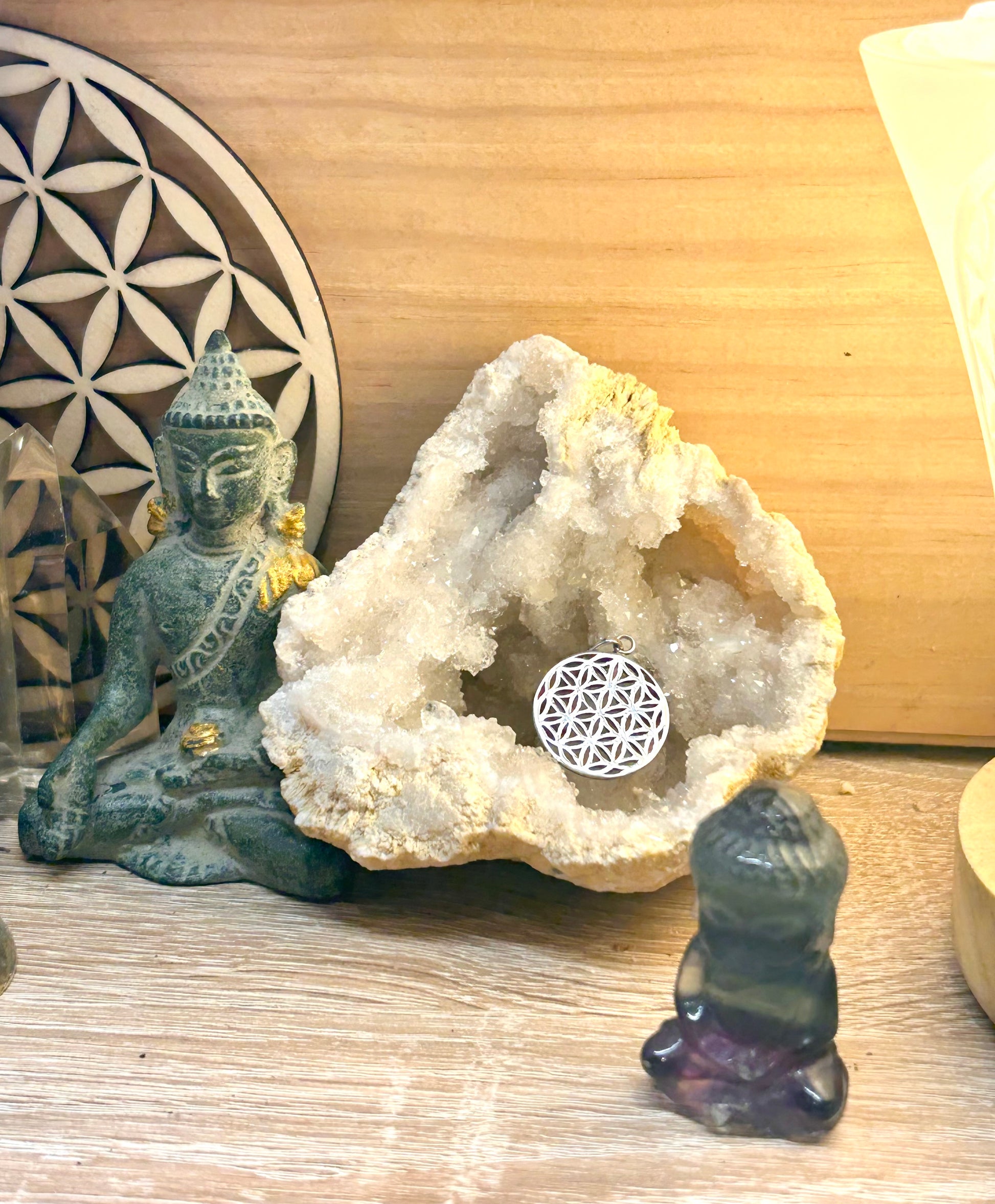 Elle est capable de nombreux bienfaits, notamment en lithothérapie, grâce à sa force vibratoire et énergétique. Utiliser une fleur de vie vous permettra de recharger vos pierres, d’harmoniser les énergies, de purifier une pièce, voire même d’aider à conserver vos aliments, l’eau, etc…