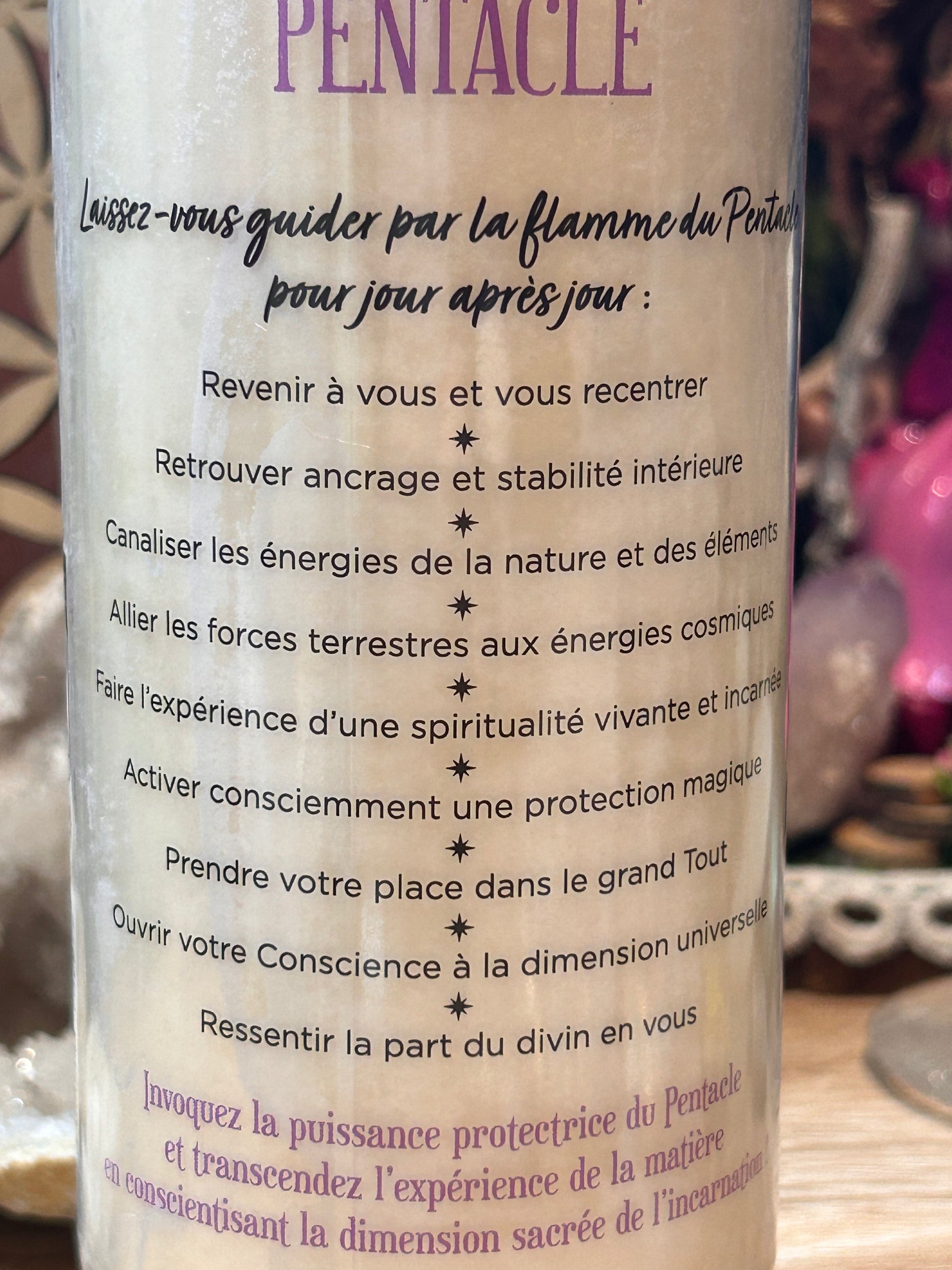 Conçue pour accompagner les démarches de développement personnel, les rituels, les cérémonies mais aussi les cercles de paroles, cette neuvaine vous invite à vous connecter à l’énergie sacrée du Pentacle : la protection. Durant les 9 jours, sa flamme vous guidera en 9 étapes graduelles afin d’explorer les propriétés, pouvoirs et potentialités de son cercle sacré. Invoquez la puissance protectrice du Pentacle et transcendez l'expérience de la matière en conscientisant la dimension sacrée de l'incarnation ! Revenez au centre de vous-même et découvrez la puissance magique du Cercle !