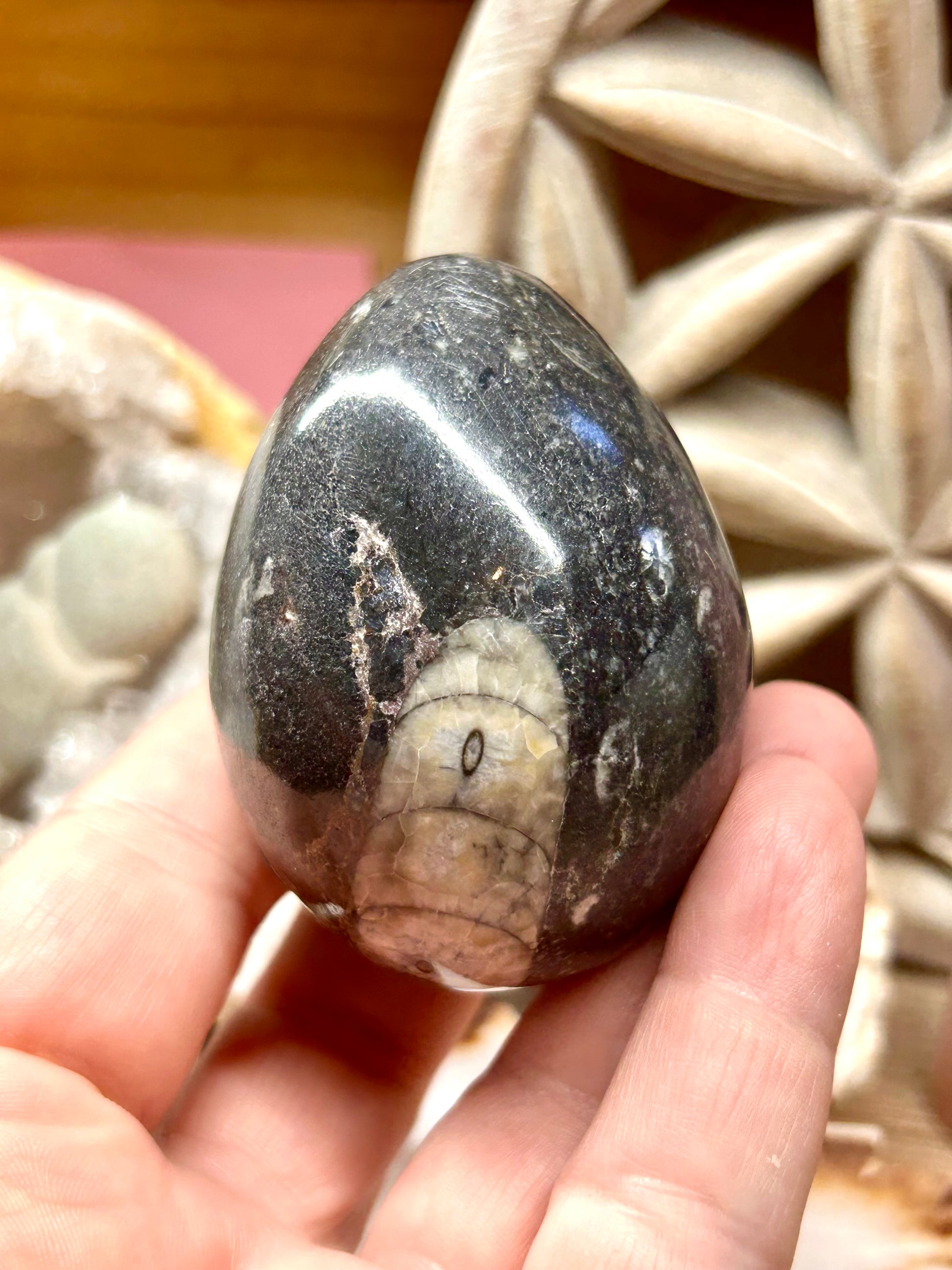 Plan mental : L’Orthoceras est une pierre que l’on retrouve souvent dans le monde de la magie. Elle sert de protecteur contre le mal et les énergies négatives. Ces fossiles sont également particulièrement bons pour les os et le système rénal.