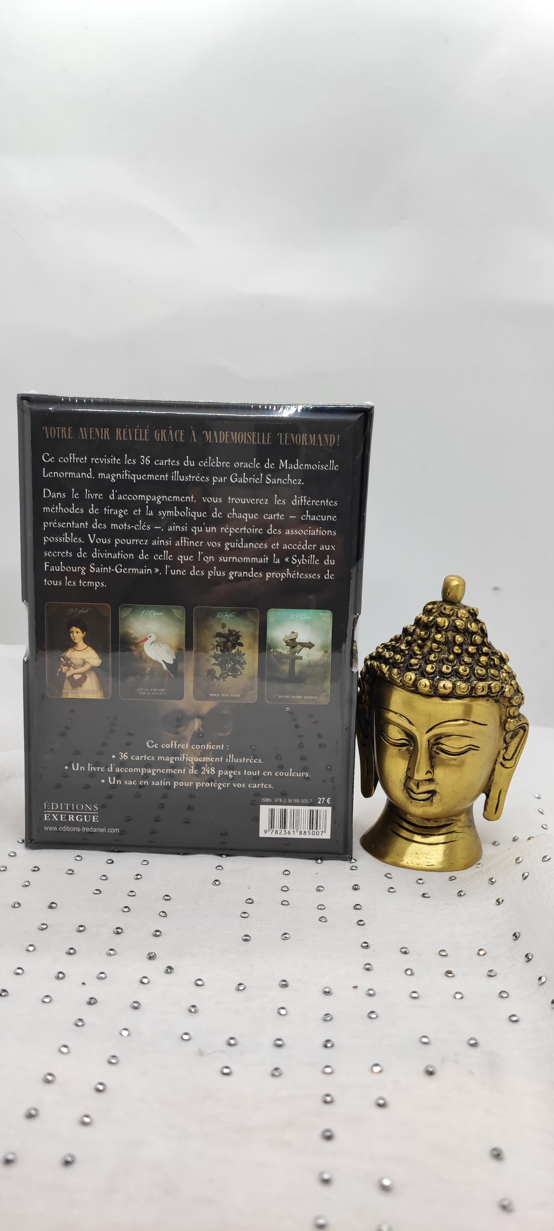 Dans le livre d’accompagnement, vous trouverez les différentes méthodes de tirage et la symbolique de chaque carte — chacune présentant des mots-clés —, ainsi qu’un répertoire des associations possibles. Vous pourrez ainsi affiner vos guidances et accéder aux secrets de divination de celle que l’on surnommait la « Sybille du Faubourg Saint-Germain », l’une des plus grandes prophétesses de tous les temps.