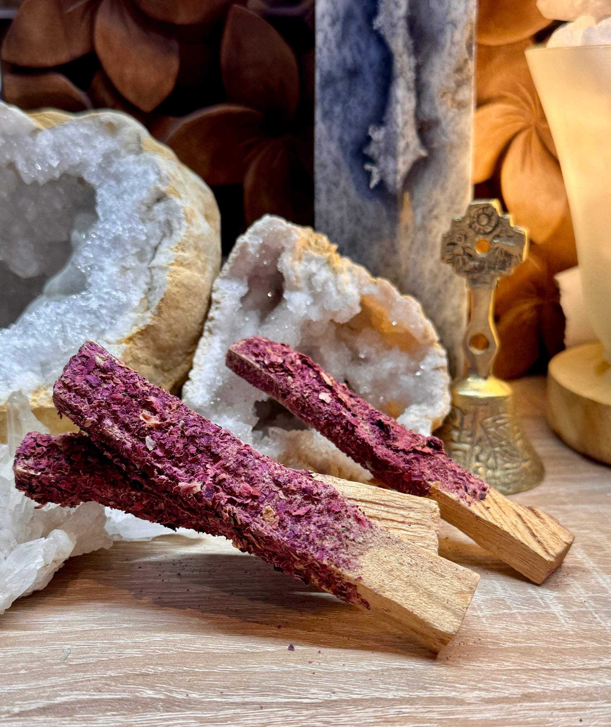 Dans la tradition amérindienne, les chamans et guérisseurs utilisent ce bois comme un encens dans leurs cérémonies et rituels de fumigation, en se consumant, le Palo santo produit une fumée qui est réputée nettoyer et purifier l'atmosphère contre les mauvais esprits et les forces négatives ainsi attirer la bonne augure. Le Palo Santo amène paix et harmonie à l’esprit et crée une énergie propice de prospérité et d’abondance.