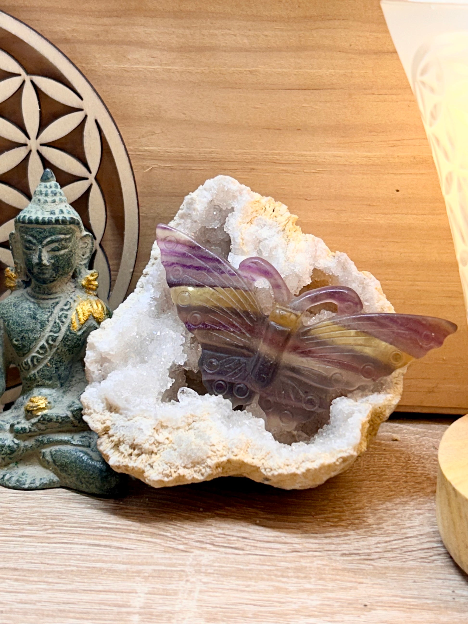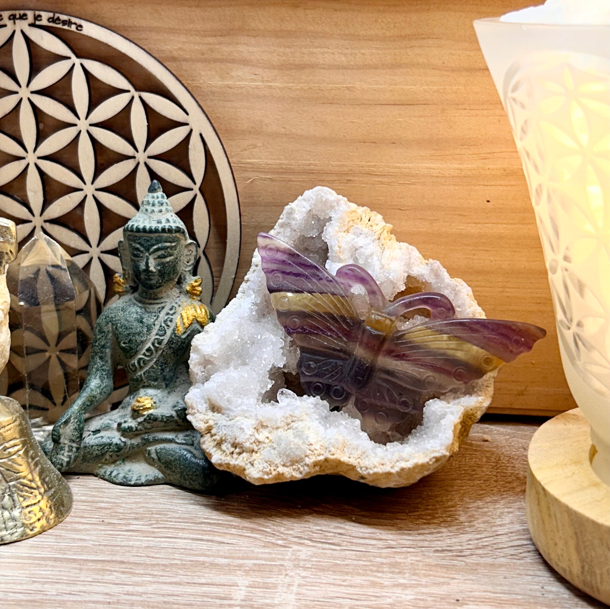Plan spirituel : La Fluorine vous ouvre à l’exploration intuitive d’autres espaces en vous et dans l’Univers. C’est une pierre qui porte la liberté. Liberté de penser, de voir, d’exprimer et d’agir ! Elle vous donne l’assise et la confiance en vous nécessaires pour transmettre paisiblement les nombreuses informations que vous percevez à chaque instant, y compris les moins palpables ou les plus étranges.