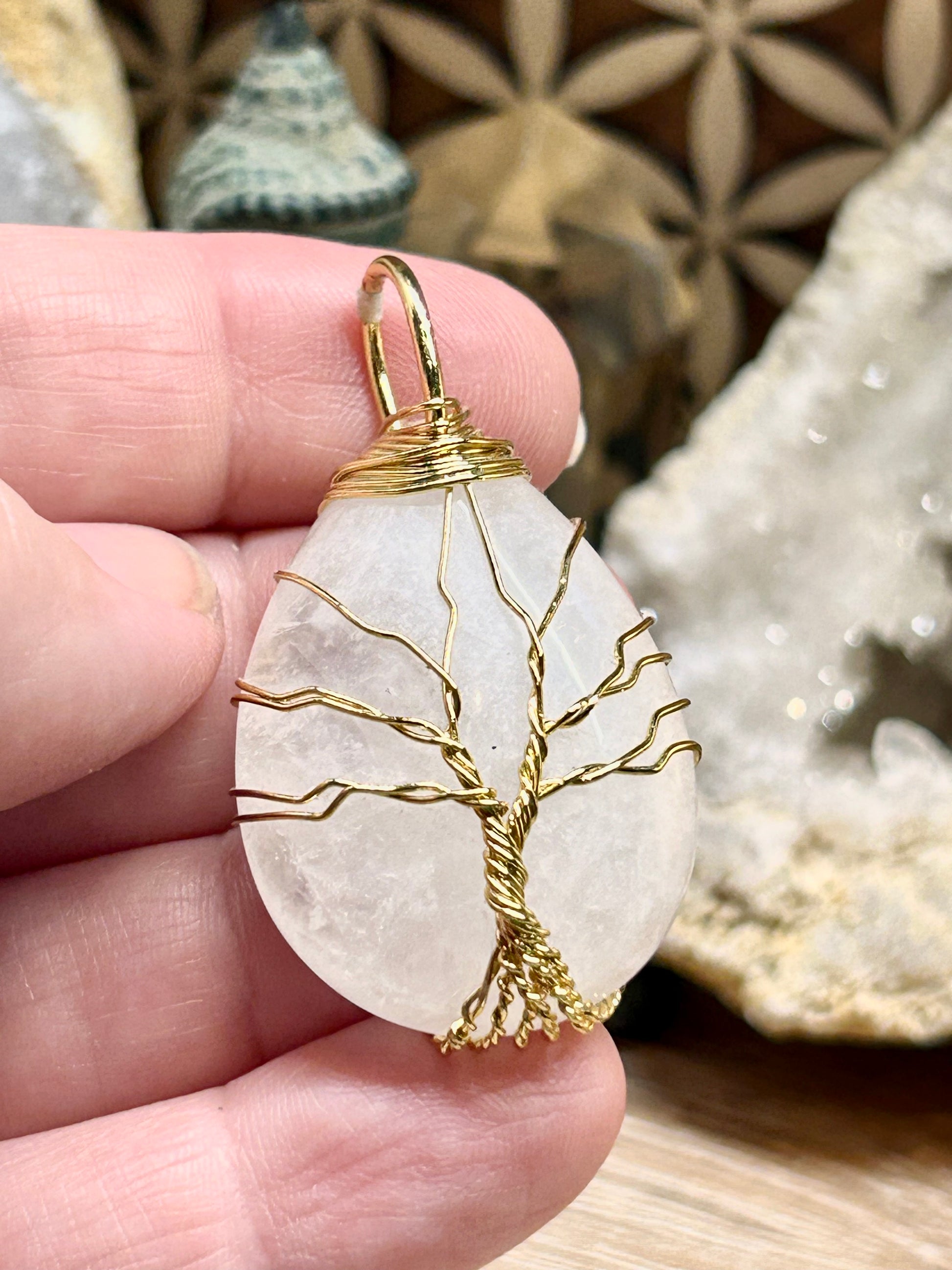 Pendentif arbre de vie en cristal de roche