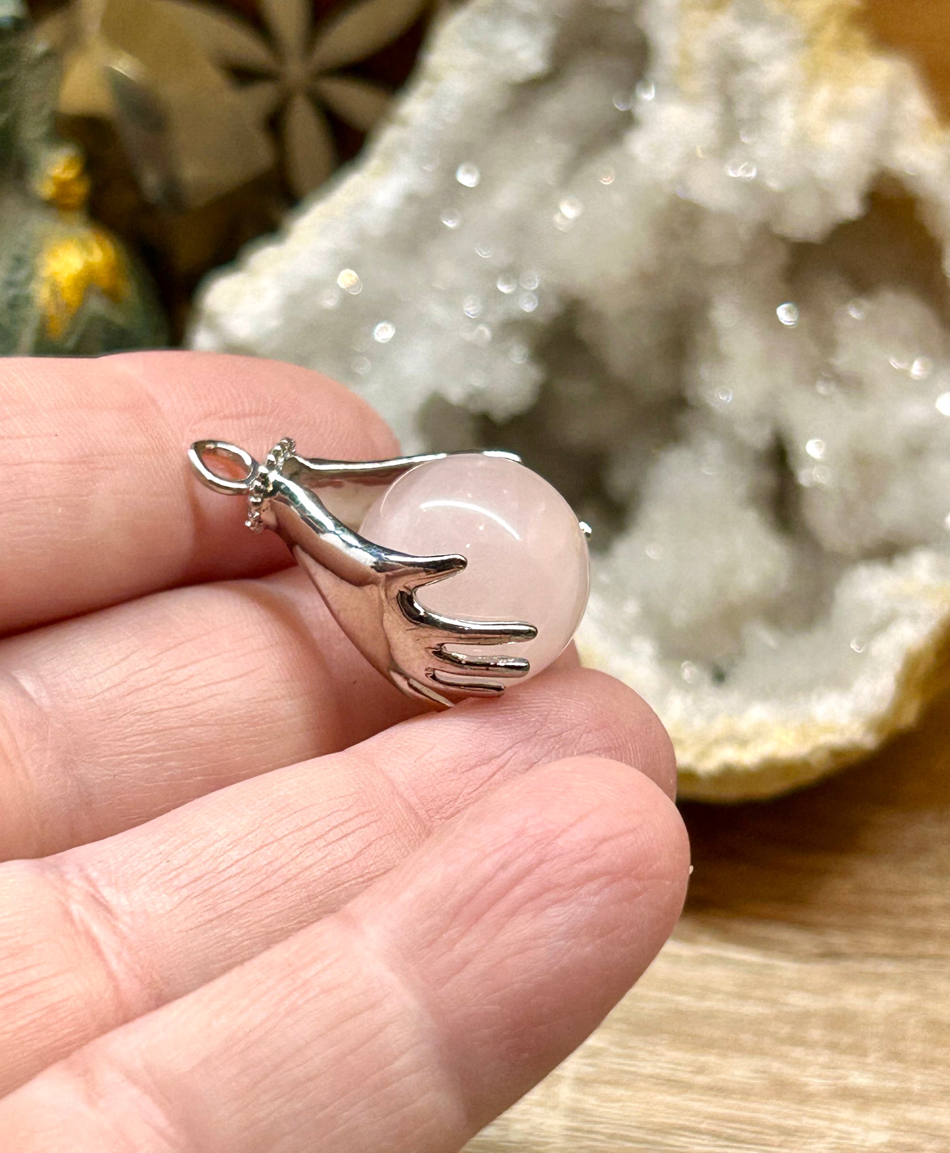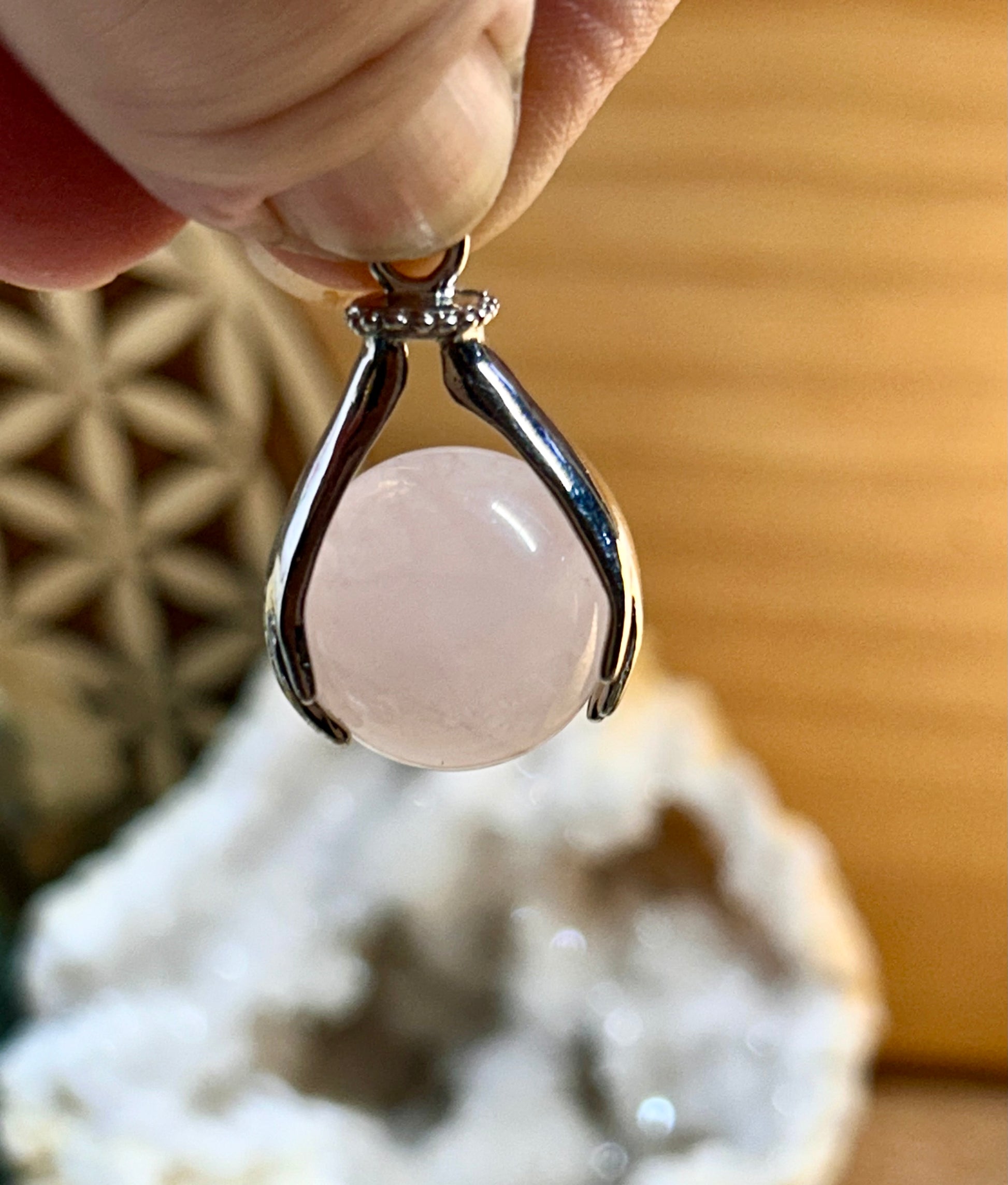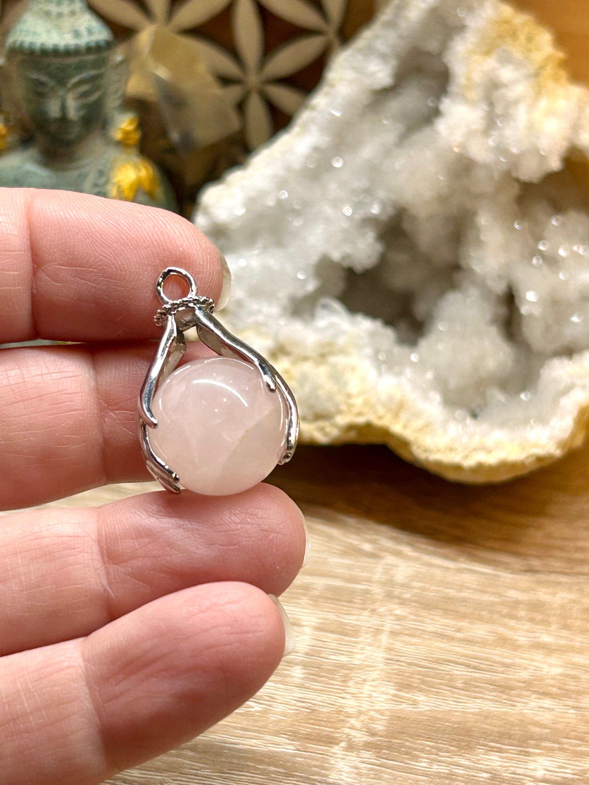 Pendentif bille de quartz rose