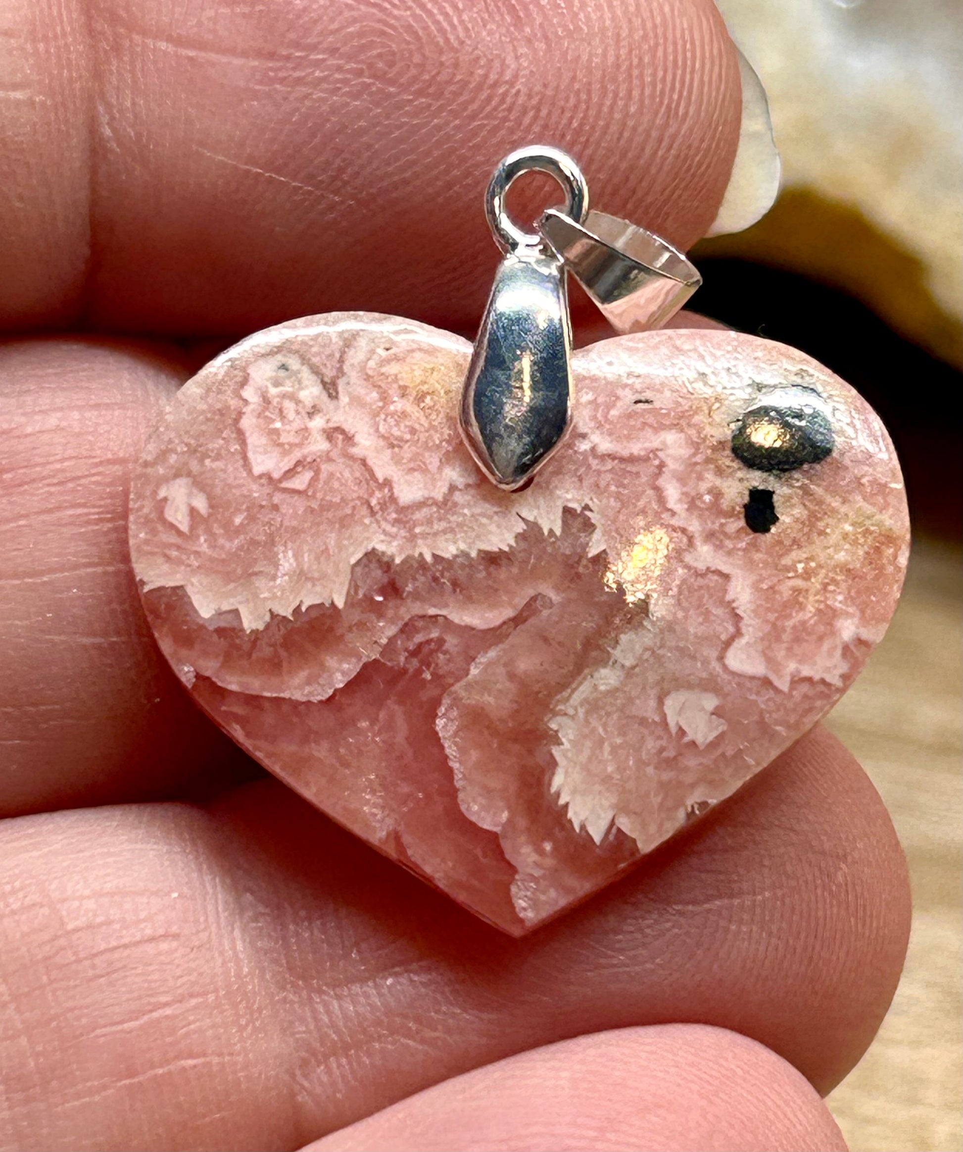Pendentif cœur de rhodochrosite - 1