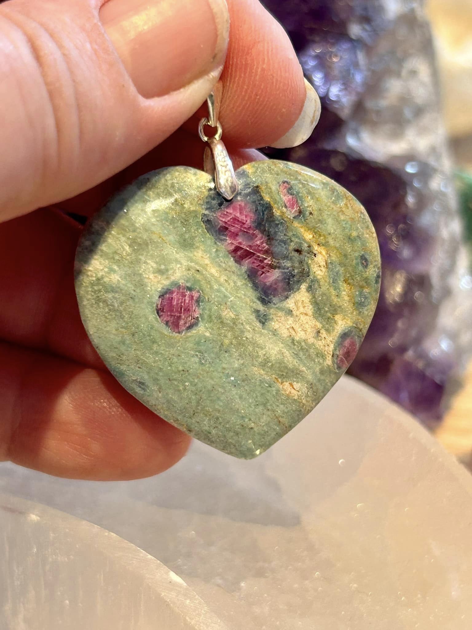 Pendentif coeur de Rubis sur fushite avec bélière argent 925