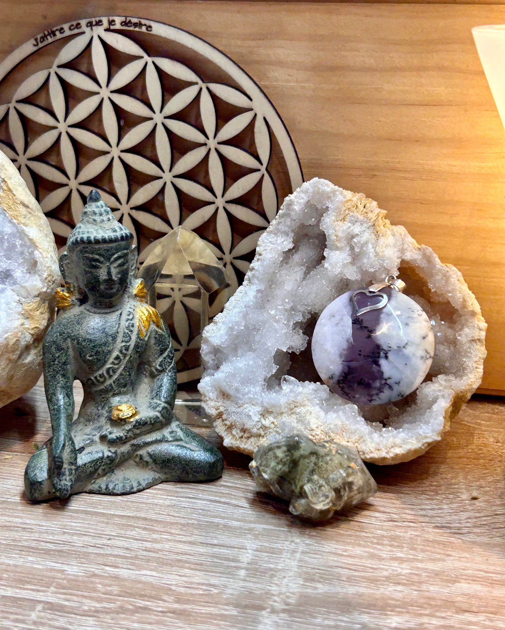Plan spirituel : L’Agate dendritique, pierre de plénitude, qui apporte l’abondance et la complétude dans tous les domaines de la vie y compris les affaires et l’agriculture. Elle vous permettra de vous sentir accompli au travers des différentes facettes de votre vie, aussi bien professionnelle que familiale. Ses inclusions de manganèse rappellent le règne végétal et la connexion à la Terre et nous guide à rester enraciné dans les moments où l’on a besoin de plus de stabilité pour passer au travers des conflits.