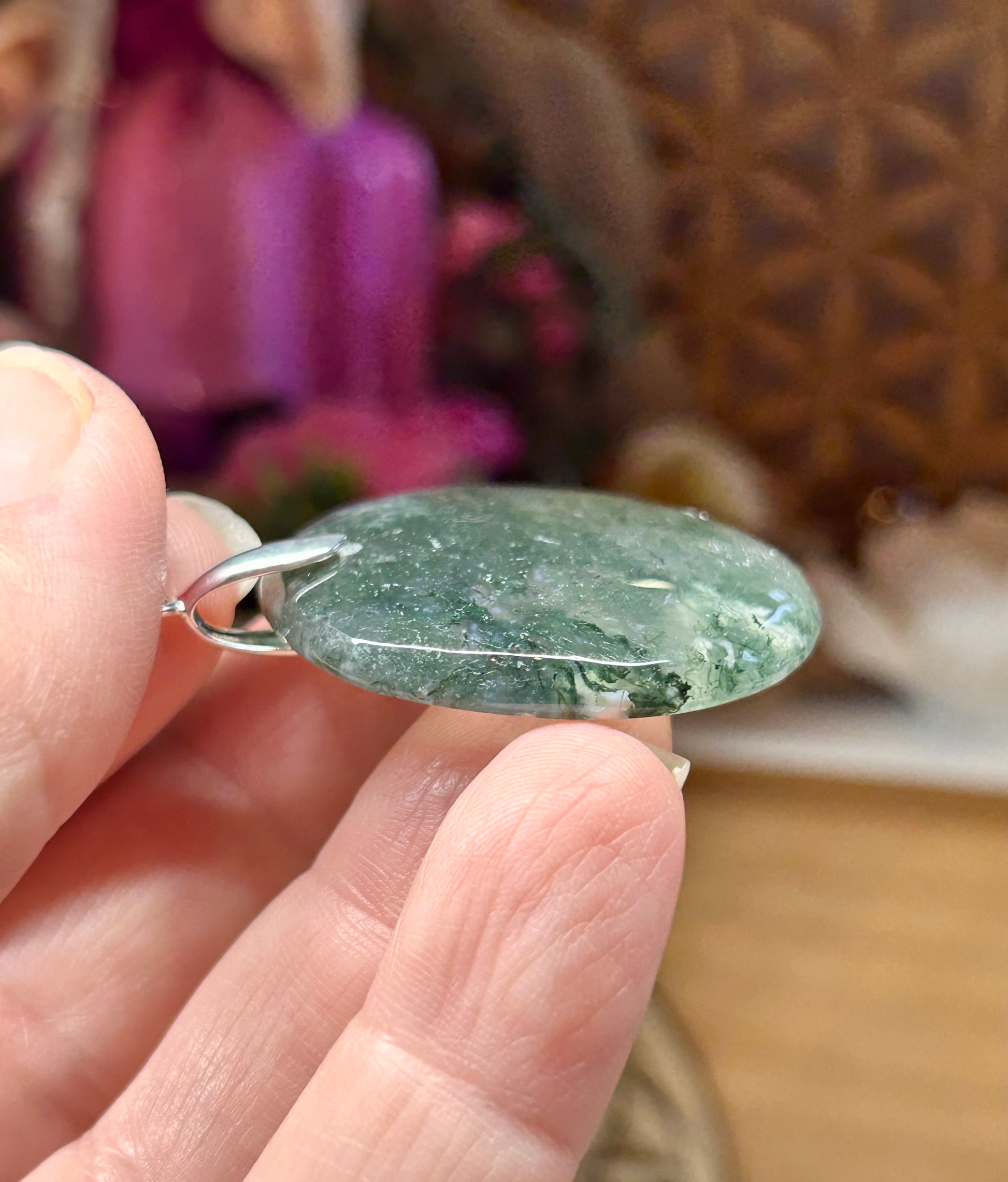 Plan spirituel : L’agate mousse est une pierre naturelle qui nous aide à développer notre 6ème sens, elle apporte calme et détente, renforce notre amour de la nature et développe la communication avec notre Terre-Mère. Elle nous permet de nous reconnecter en ses forces, mais aussi aux arbres, à l’eau.